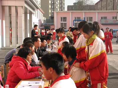 海化社举行的“义务校园行之高中行”顺利完成。早上9时,海化社的同学准时从学校东门出发,到达长春二中总部和高三分部两组开始义务校园行。