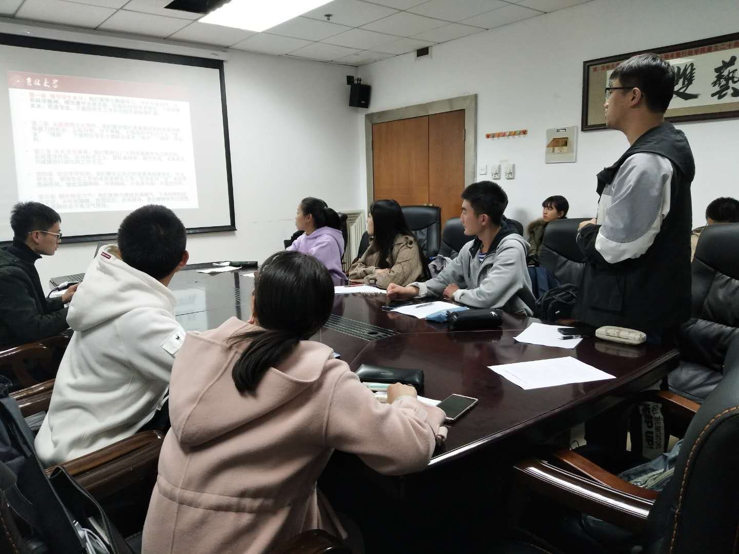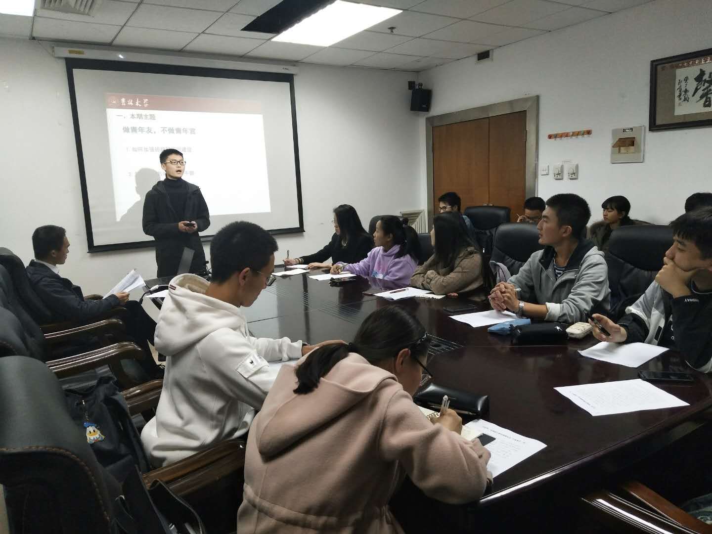 随后,同学们共同学习了由全国学联发出的《学生会、研究生会干部自律公约》,并据此展开了激烈的讨论。2017级本科生孟从华认为发展个人与服务同学之间是统一的,要把个人利益与集体利益结合起来;2017级本科生崔贺则认为“做青年友,不做青年官”就是要求学生干部明确自身定位,始终将“为同学服务”看作是学生组织的第一任务。2018级本科生刘子正、朱鸿等同学也提出了自己的观点。