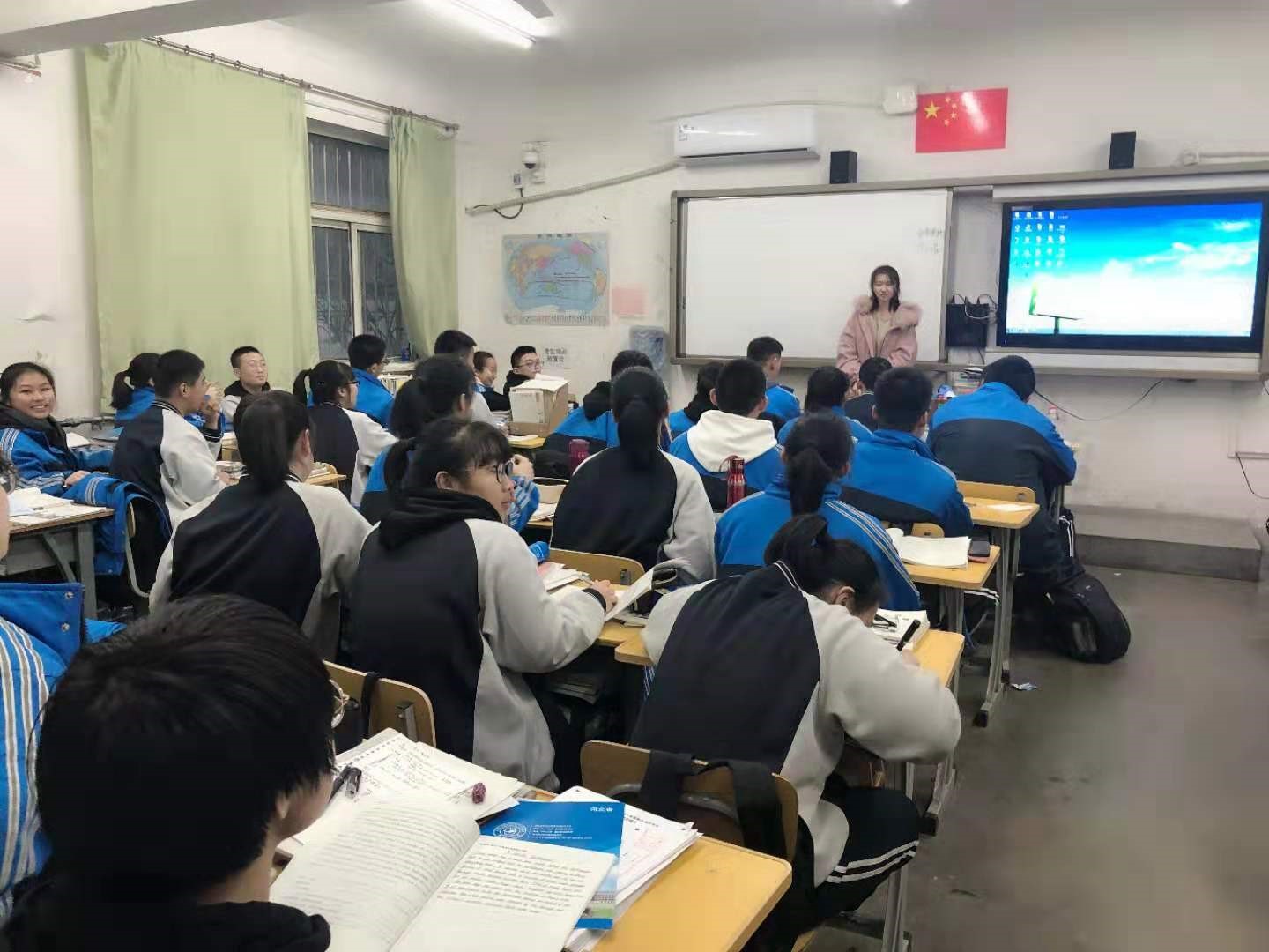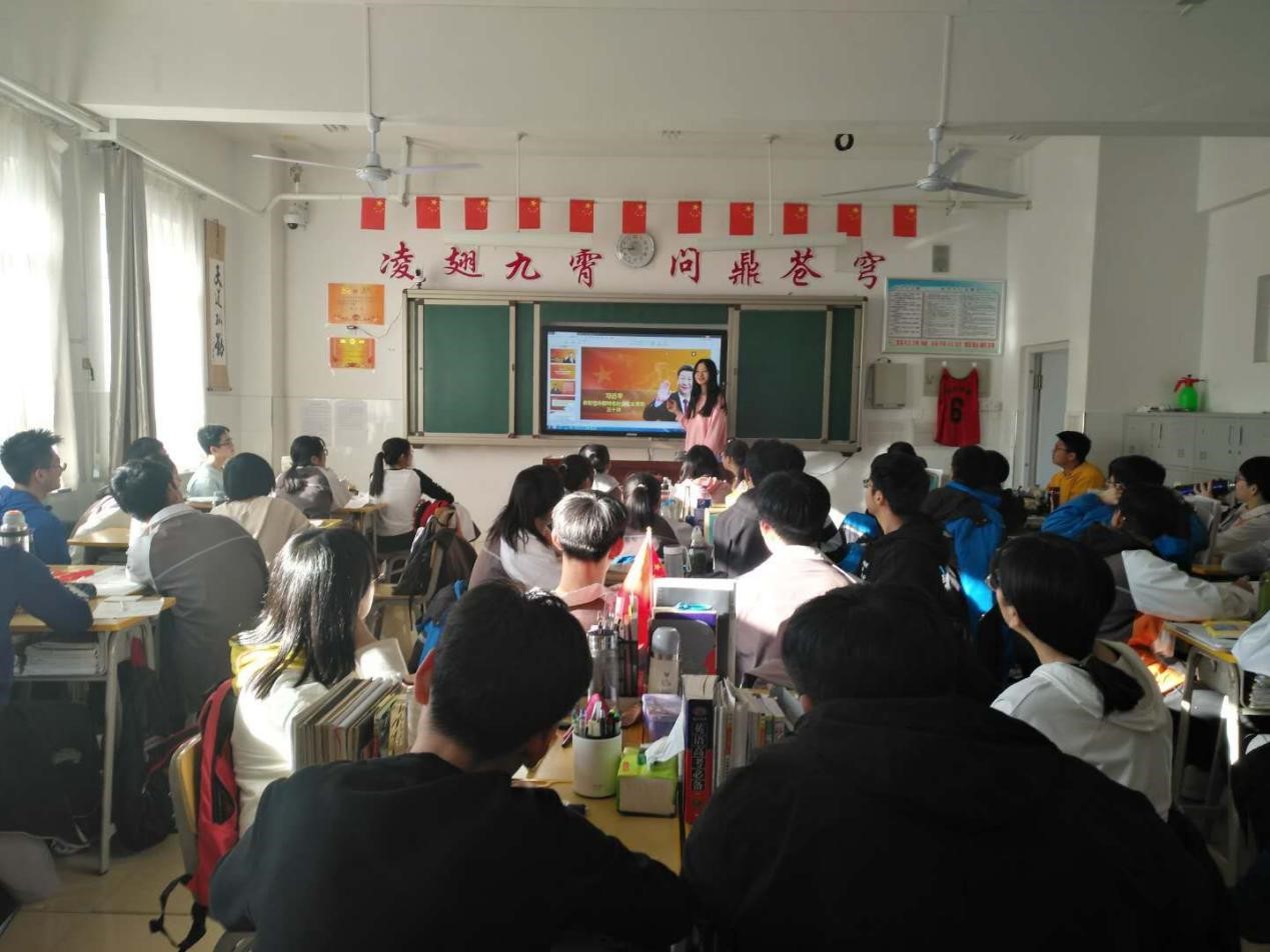 2月20日下午,2018级冉珂欣同学到达河南省沁阳市第一中学1728班进行新思想宣讲活动。本次宣讲以党史提问为开端,以结合考点为发展,以发奖环节为高潮,以“十九大”常识介绍为结尾,涉及语文、英语、政治、历史等多方面的知识,既让同学们巩固了中共党史,又帮助他们积累了考试素材,提高综合了素养,一举多得,效果突出。