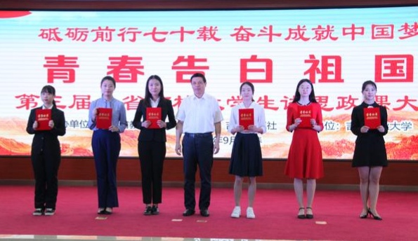 2019年9月3日,“砥砺前行七十载,奋斗成就中国梦”第三届吉林省高校大学生讲思政课大赛在吉林农业大学落下帷幕。决赛场上,十五支参赛队伍汇聚一堂、登台授课,妙语连珠、精彩纷呈。我院代表队和我校马克思主义学院代表队以总分并列第一名的优异成绩,斩获第三届吉林省高校大学生讲思政课大赛一等奖。我院邀请优秀院友代表、马克思主义学院副教授郝玲玲老师担任指导教师,辅导员刘洋老师也参与到了团队指导与备赛保障工作中。我院代表队从7月1日组建,到9月3日省赛夺魁的两个月来,团队师生精诚团结、紧密配合,克服各种困难,最终荣耀不负汗水、努力迎来收获。