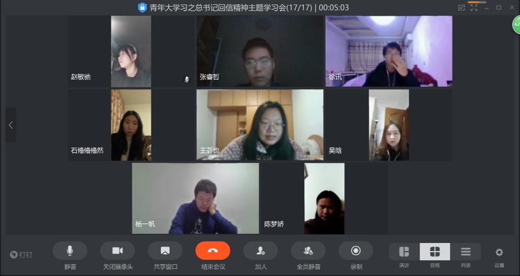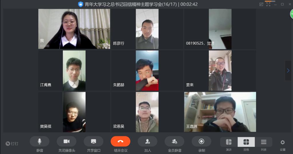 为深切领悟回信精神,学院团委于2月27日17时举办总书记回信精神主题学习会,以网上直播的形式开展青年学习班第三次课程活动,毛安之(2018级本科生)为本次活动的主持人。我院2019级青年学习班成员共同学习习近平总书记的回信,大家深受鼓舞、倍感振奋,纷纷表示要牢记嘱托、学好本领、报效祖国。