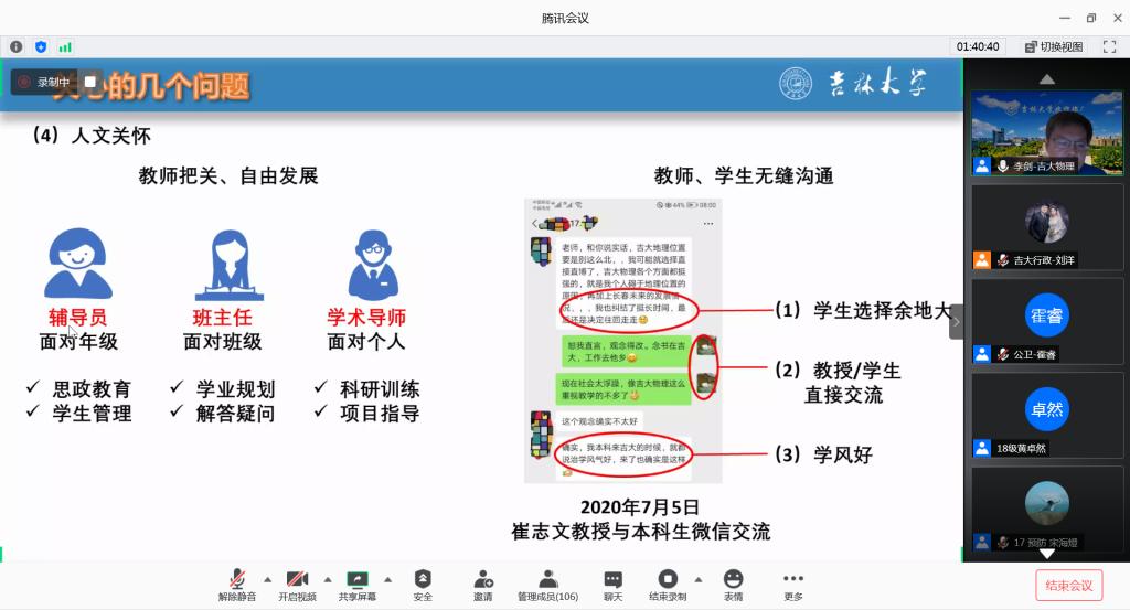 党委副书记兼副院长史慕华也来到线上会议平台,了解宣讲会举办情况、与广大考生和家长进行交流。