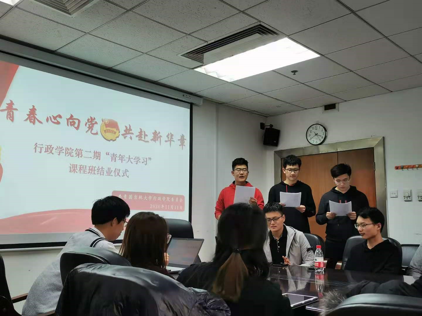 为汇报第二期青年学习班学习活动开展情况,总结青年学习班举办经验,展望未来青年学习班的改进与发展,11月11日下午三时许,院团委于东荣大厦1202活动室举办青年学习班结业典礼,王世亨(2017级本科生)、王馨瑶(2018级本科生)同青年学习班第二期全体成员参与活动,由王馨瑶担任主持工作。