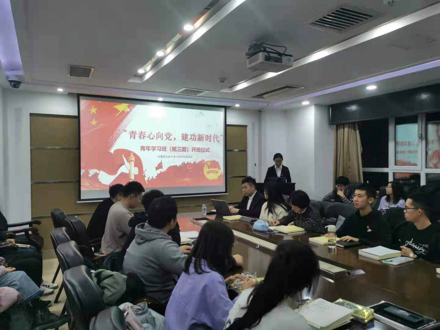 团委结合本院实际工作情况,于中心校区东荣大厦1214室举办院级青年马克思主义者培养工程——青年学习班(第三期)开班仪式,院学生会组织建设部全体成员及青年学习班2020级学员一同参加本次开班仪式,杨汝嘉(2019级本科生)担任本次活动主持。