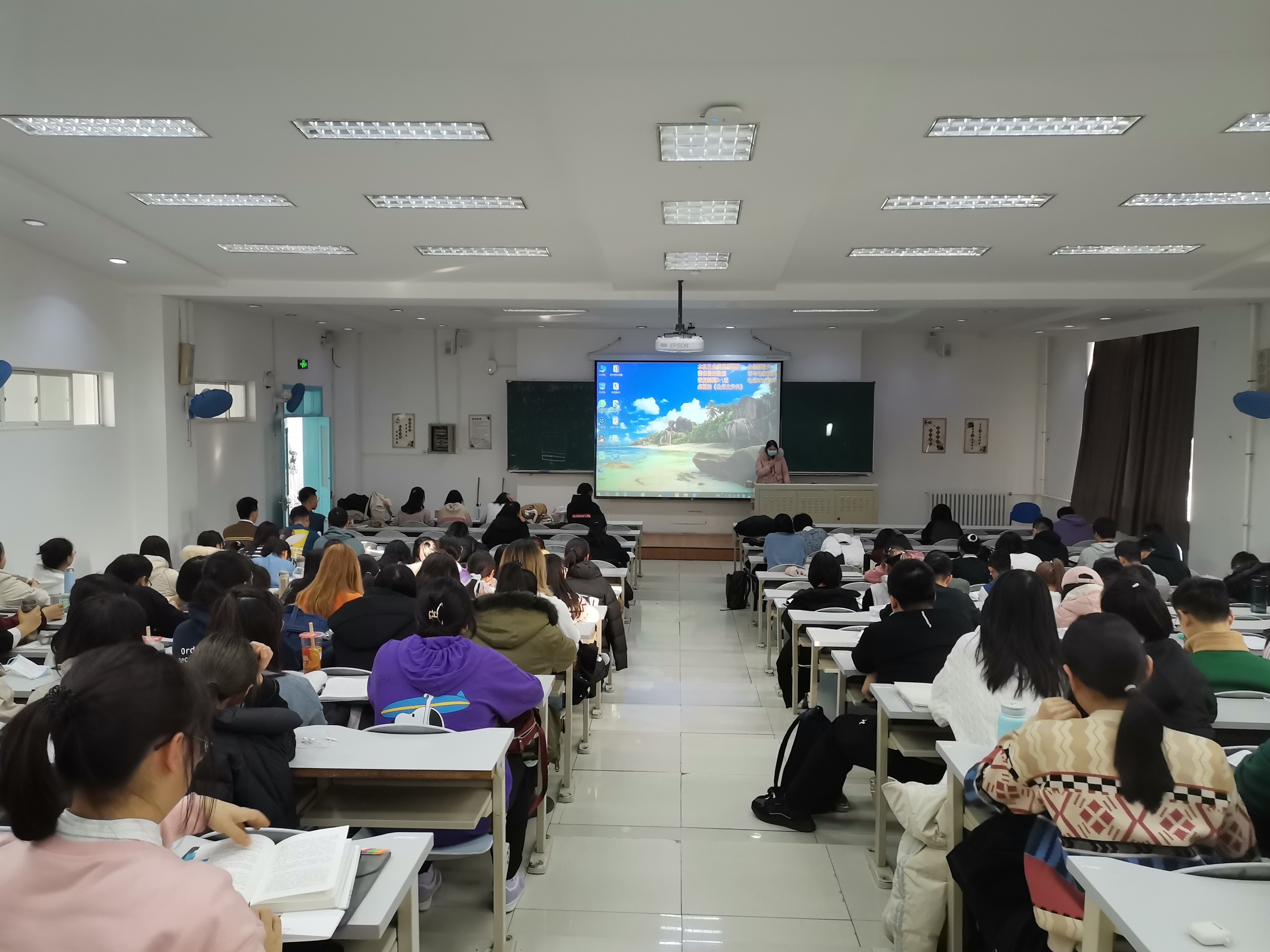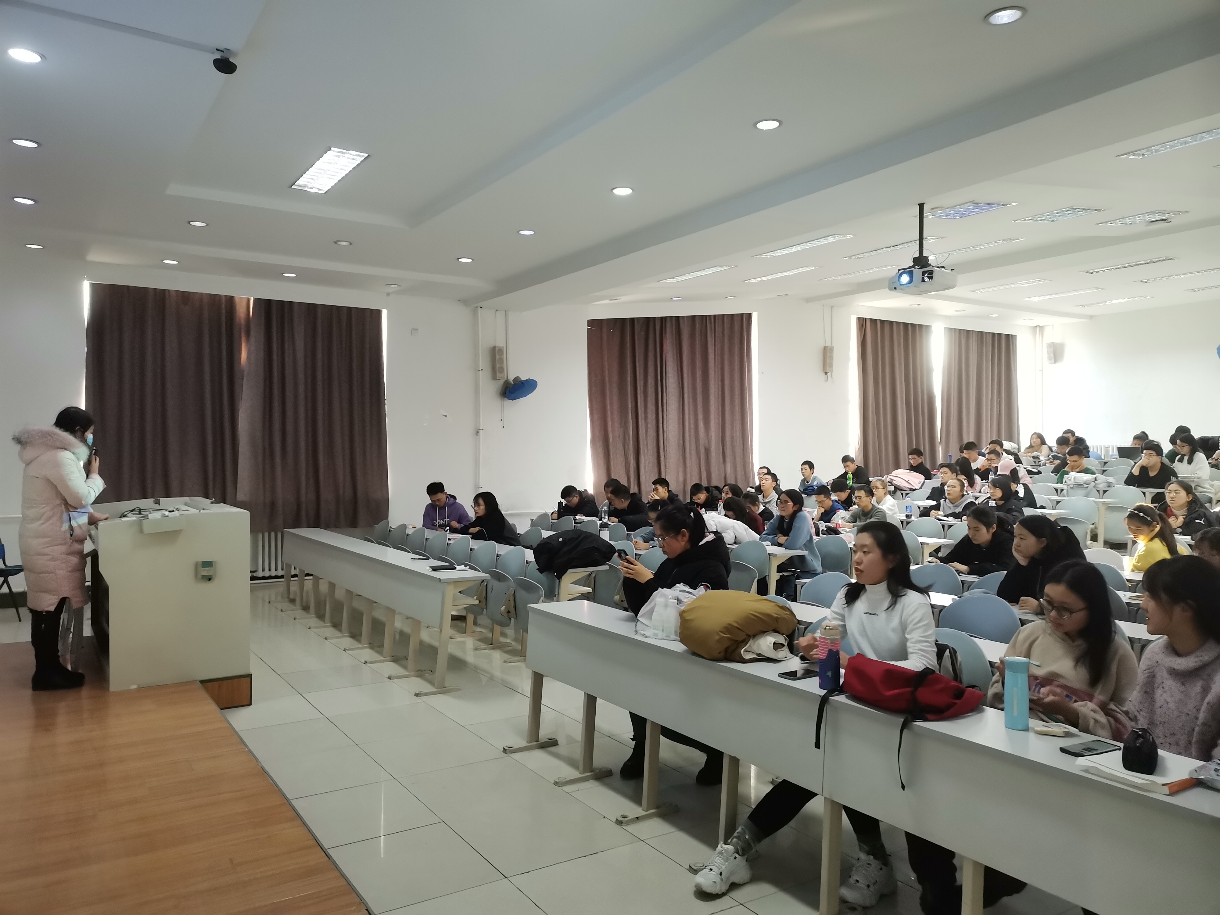 于第三教学楼第十一阶梯教室召开2020-2021学年第一学期2020级本科生考前动员大会。我院教学办公室主任连永超、本科生辅导员孙月出席本次动员大会,2020级全体本科生参加大会。