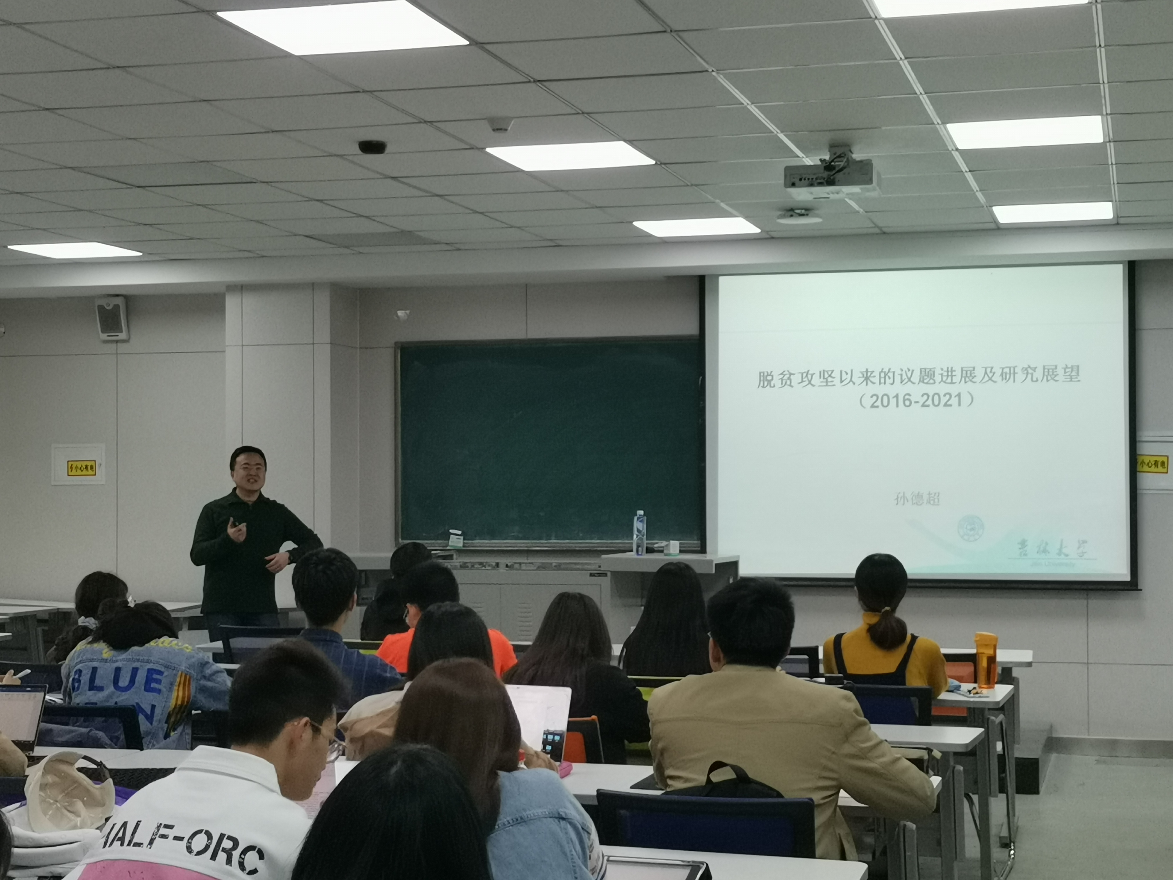 农村发展研究协会邀请了孙德超老师于中心校区第三教学楼203教室开展了以“脱贫攻坚以来的议题进展以及研究展望”为主题的讲座,江禹熹(2019级本科生)为本次活动的主持人,学院部分本科生参与了此次讲座。