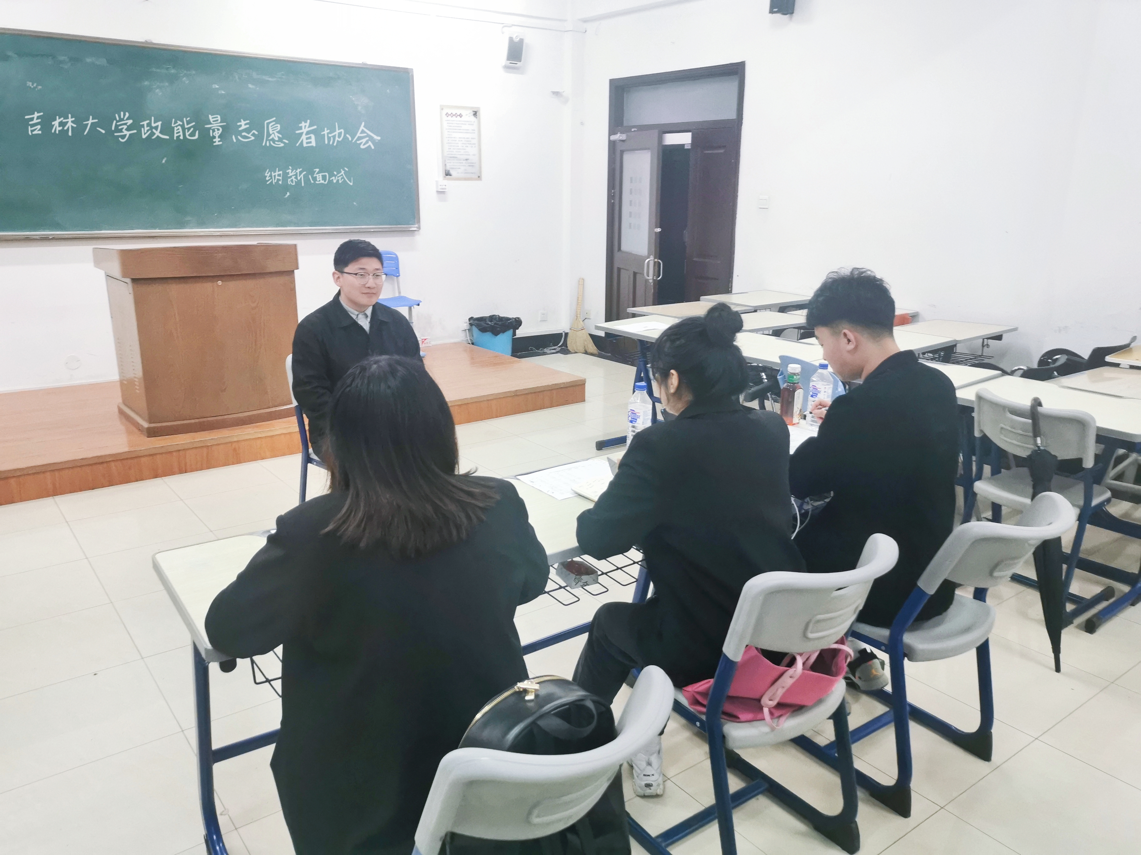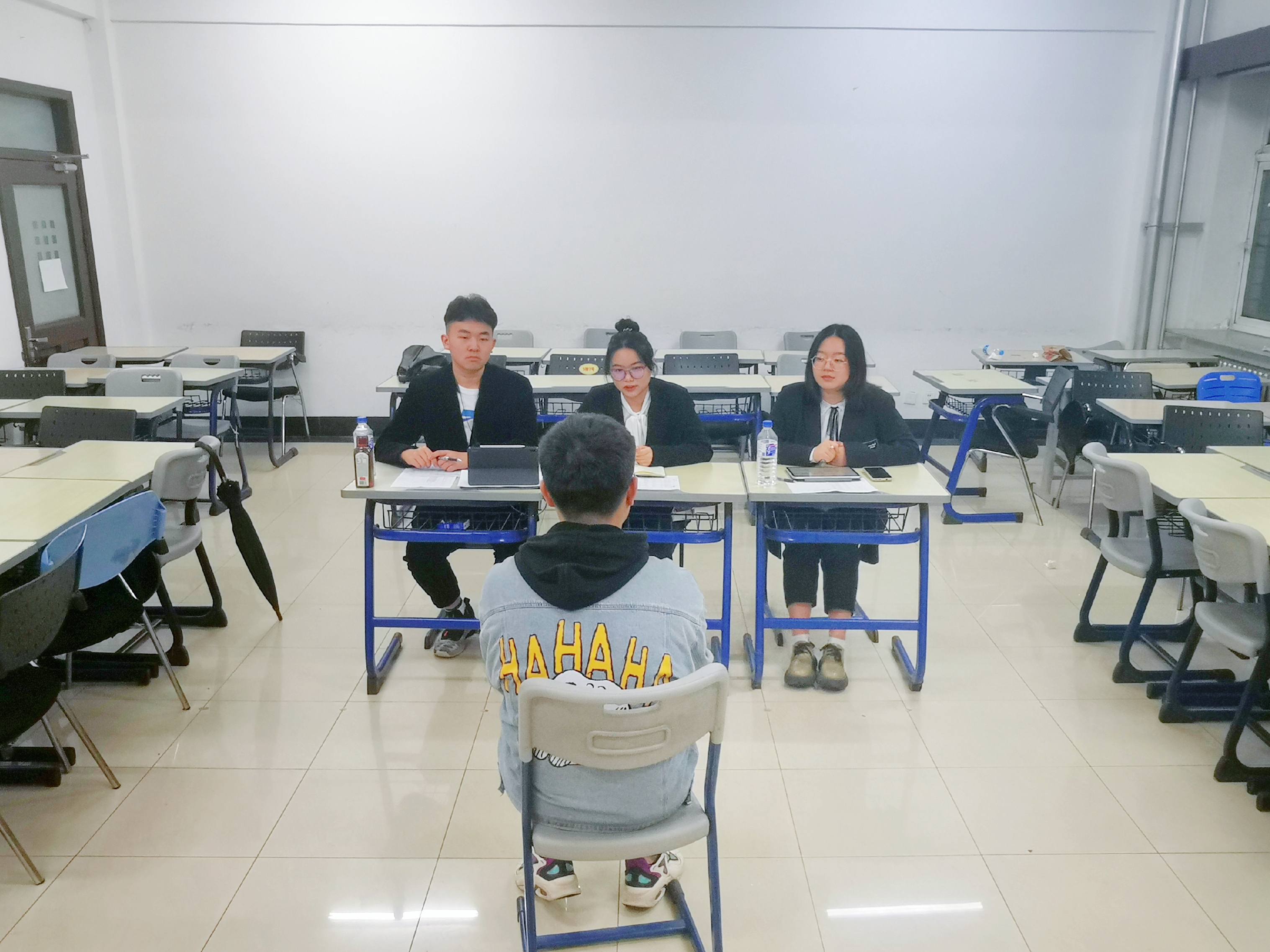 政能量志愿者协会在中心校区经信教学楼A105教室举行了本学年的社团纳新面试。本次面试共有25人参加,面试评委由政能量志愿者协会的三位执行团成员担任。