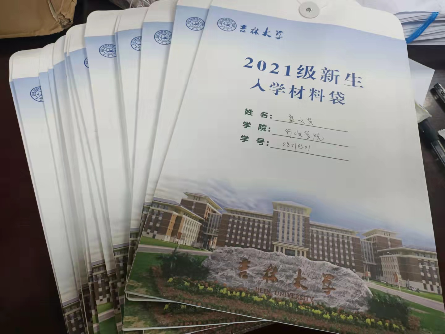 校徽,新生材料袋里装入了每位同学的一卡通、宿舍钥匙、银行卡以及有关心理健康的材料。
