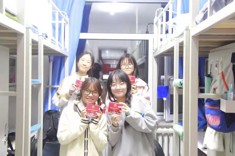 的特定门楣、门牌、以及床贴。9月20号,在辅导员老师、新生辅导员助理以及院学生组织成员的共同努力下,门楣、门牌、床贴都已“就位”,文苑二公寓二楼和文苑三公寓六楼的宿舍有了“家”的味道,充满了温馨感。中秋节当天,苹果和月饼也发放到了每位新生手中。