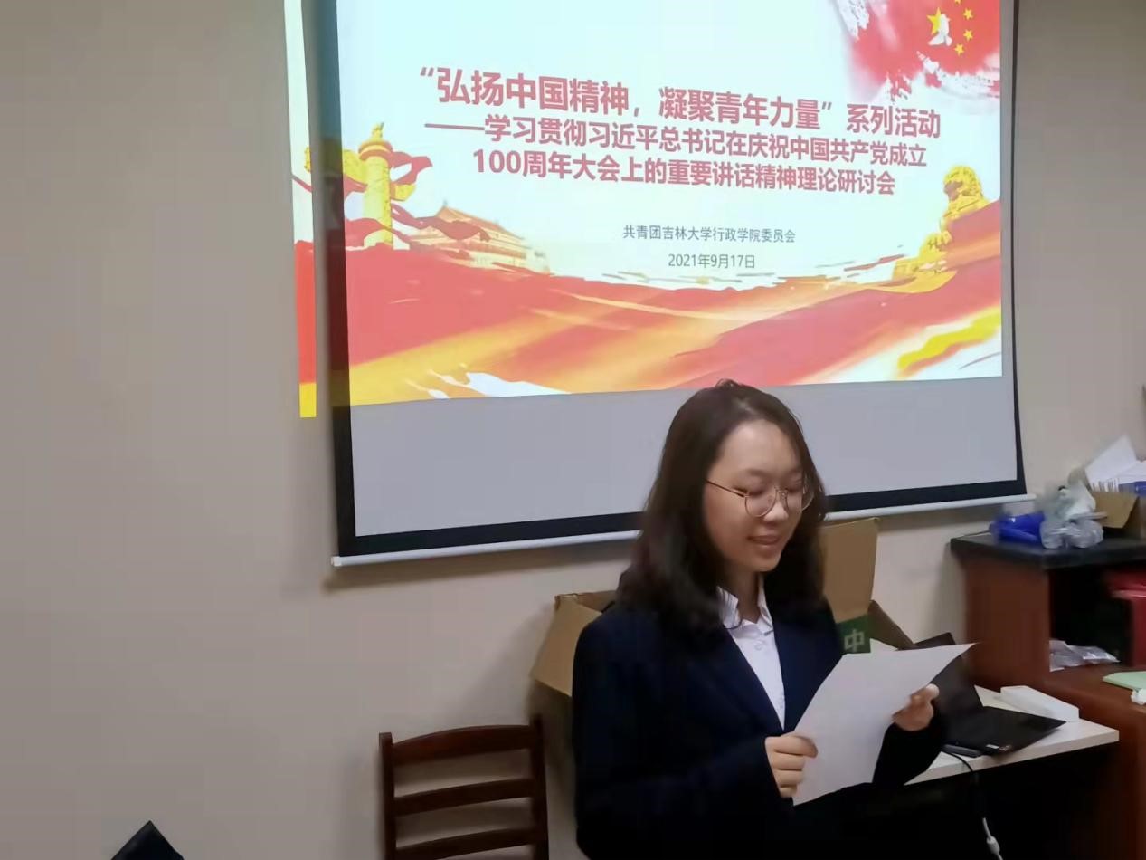 团委于9月17日晚在南苑二公寓活动室举办“弘扬中国精神,凝聚青年力量”系列活动——学习贯彻习近平总书记在庆祝中国共产党成立100周年大会上的重要讲话精神理论研讨会。樊昊祺(2019级本科生)、陈佳妮(2020级本科生)及国产色情