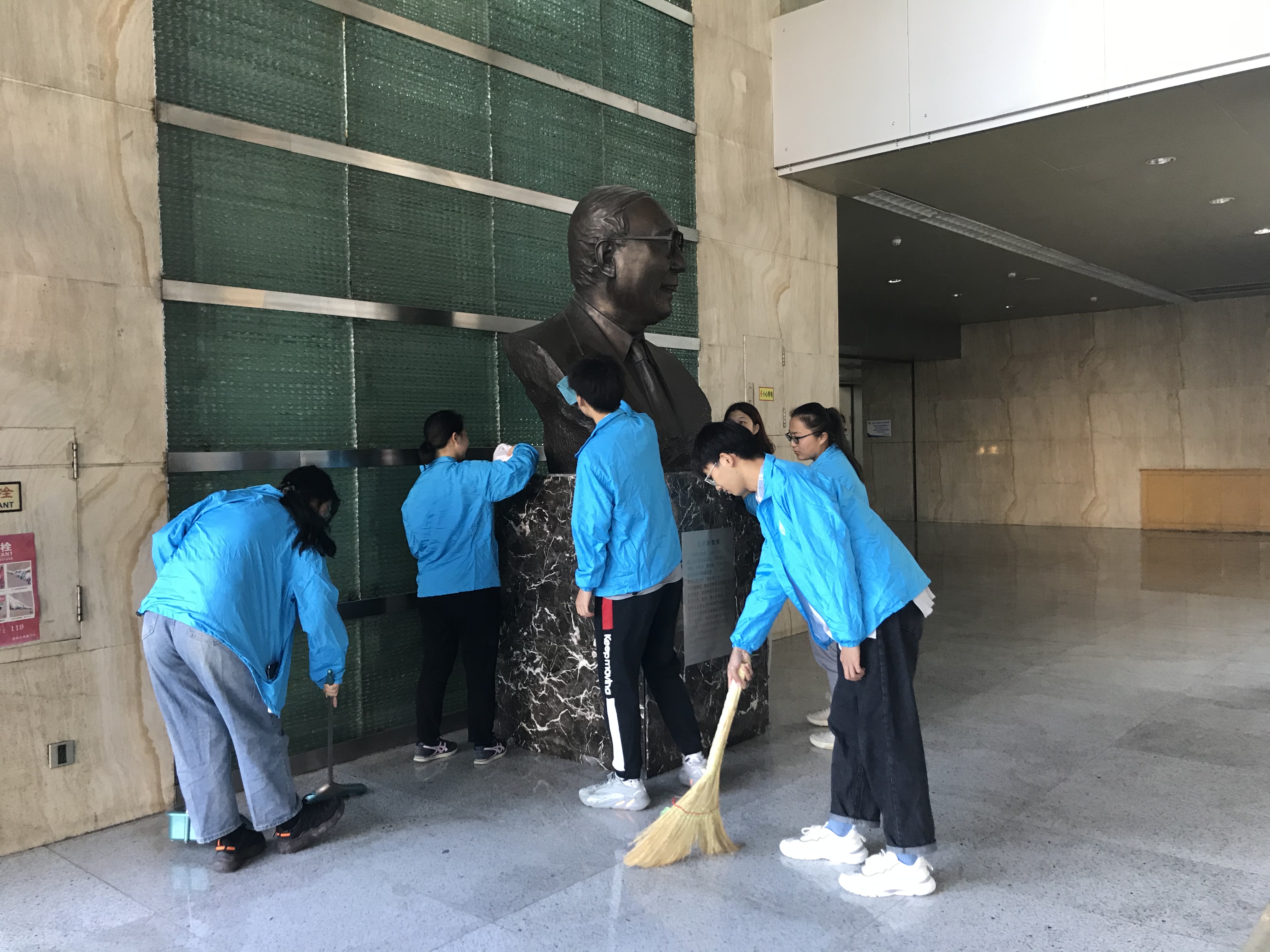 活动伊始,同学们先于东荣大厦一楼的王惠岩先生的雕像处进行院史学习。光阴不语,英魂不朽。同学们于雕像前学习先生创建国产色情