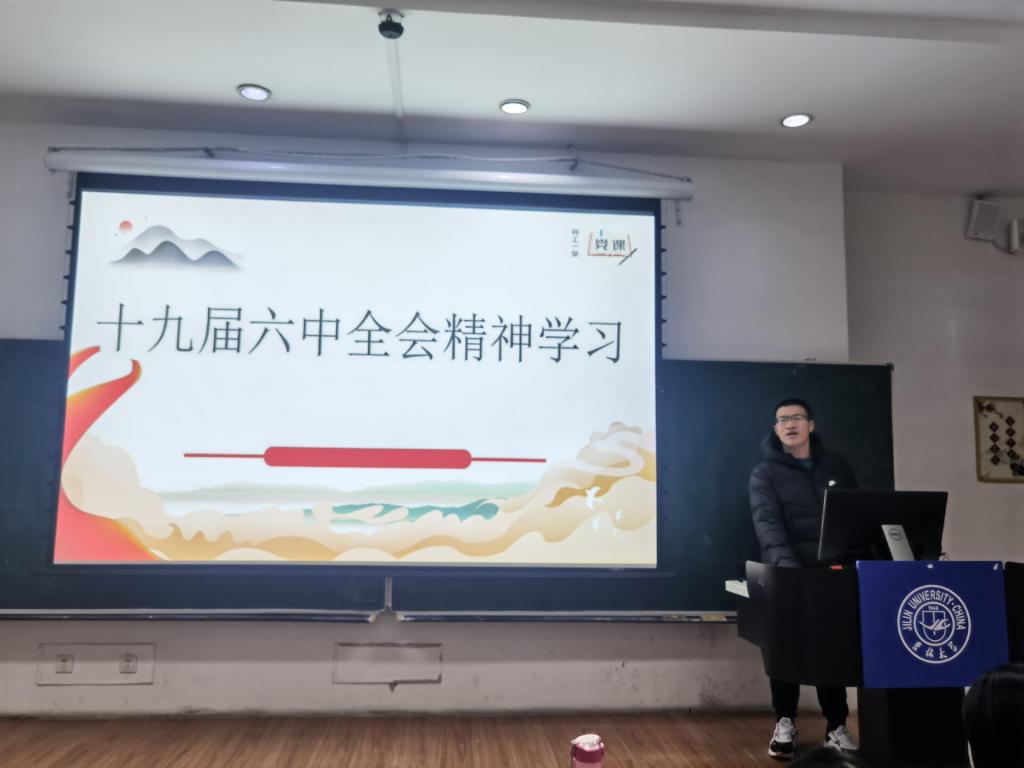各班团支部通过材料解读、视频观看、交流感想三个部分对十九届六中全会公报进行了深入学习探讨。各班团支书结合学习材料,阐释了在当今的特殊历史条件下总结党的百年奋斗经验的重要性,分享了党的百年奋斗征程中所取得的实践经验与核心要义,并从“时代、党史、青年”三个角度梳理了会议的积极作用,引发同学们的思考;接下来,通过观看关于《中共中央关于党的百年重大成就和历史经验的决议》的新闻报道,同学们对十九届六中全会有了更为系统全面的了解认识;活动最后,各位同学热烈讨论,积极发表自己的学习思考:曹阳(2021级本科生)认为,伟大成就催人奋进,宝贵经验昭示未来,我们要承前启后,继往开来,继续完成伟大使命;黄琴、刘雪莹、裴传明、郭长平、满运璋、赵梓含等同学也针对此次学习内容进行交流,纷纷表示青年学子要保持初心,听党话、跟党走,努力增强科学文化知识水平,牢记使命担当,走好新时代的赶考路!