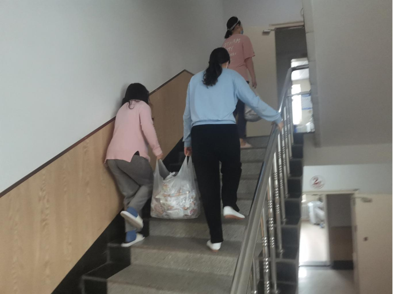 学生和校内住宿情况的真实写照,也是志愿者进行人员管理和物资调配等工作的难点。分布在南苑一公寓、南苑二公寓、南苑九公寓、文苑二公寓、文苑三公寓等5个本科生公寓楼的志愿者们面对运送时间不定、物资数量巨大、同学需求多样等重重挑战,在各公寓“楼长”的指挥和学院负责人的协调下,结合公共管理专业知识做出系统安排,安全、及时、准确地完成了各项志愿工作。“虽然工作繁忙而疲惫,而且全副武装行动和沟通起来很不方便、浑身是汗,但每当我敲响寝室的门,都会听到一声暖心的‘辛苦了,谢谢’,体力不支时也总会有人伸出援手,我知道,大家做的一切都是有价值的,我也不是一个人在战斗。”学院一名本科生志愿者感慨道。