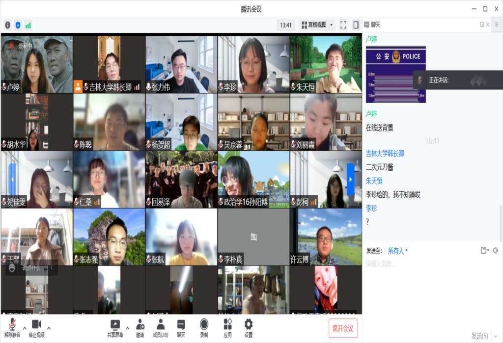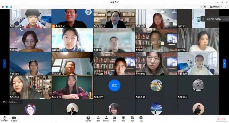 3月25日晚上,在2020级五班的班会上,班主任王庆华老师和于君博老师通过视频会议与同学们见面。王庆华老师询问了同学们生活起居与饮食方面的情况,令同学们倍感温暖。随后,两位老师向大家介绍了英屹计划征文活动,勉励同学们利用好封寝时间,以专业视角关注现实问题,在深度思考的过程中提升学术能力。在自由交流环节中,张振华同学结合自身经历,分享了如何把生活中的磨难当作一种独特的生命体验。景冉同学询问老师如何处理繁忙的工作与旅行休息之间的矛盾。于君博老师针对这两位同学的发言进行了回应,他通过回忆自己学生时代在北京经历“非典”疫情时的生活,启示大家要正确看待并积极提升生命体验,并分享了自己在工作瓶颈期时穷游欧洲的经历。