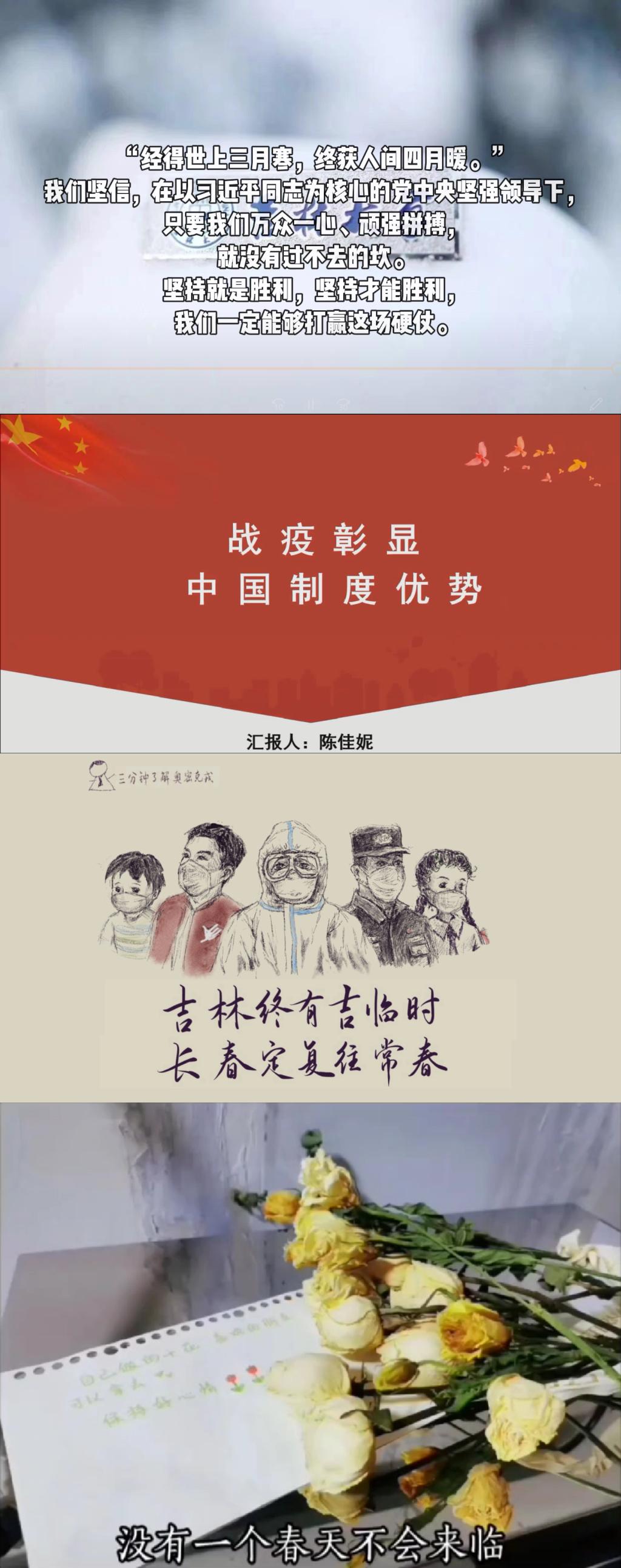 本次防疫思政微视频立项工作不仅激发了同学们的创作热情,还展示了同心偕行、乐观抗疫的青春精神,激励行政学子以更加饱满精神投身到专业学习与校园疫情防控工作中去。足音铿锵奋力行,春光不负赶路人。我们也始终相信,长春疫情防控保卫战必将取得决战决胜阶段的最终胜利!(文:国产色情