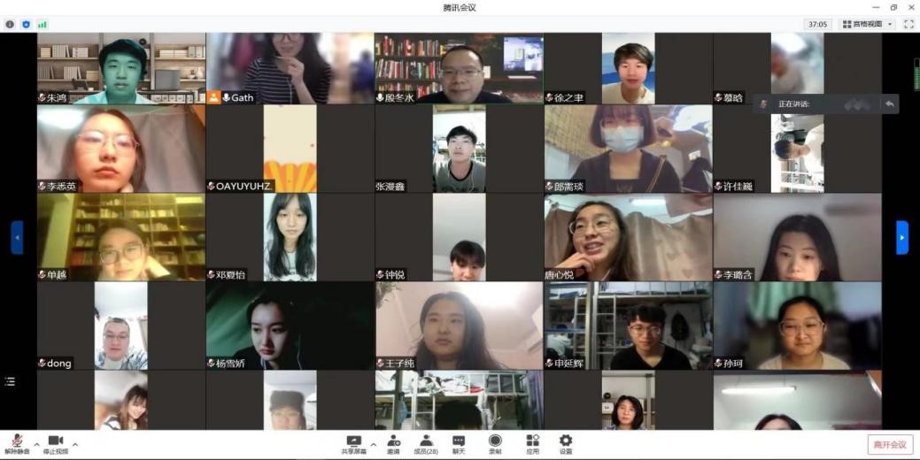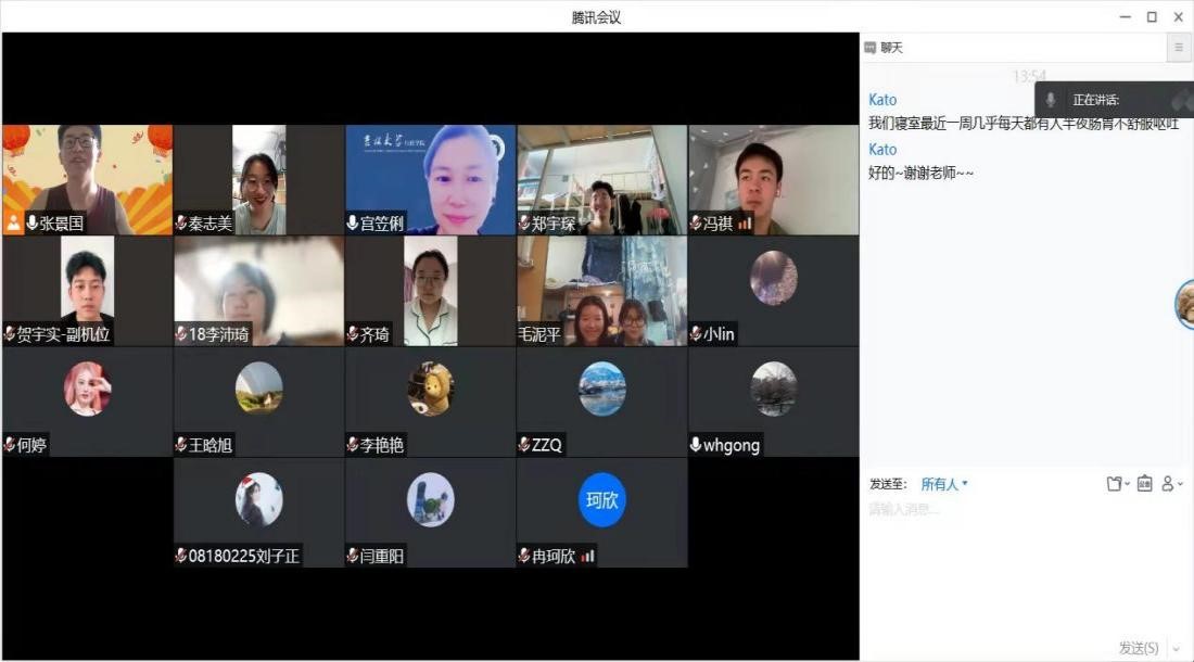 2018级二班和四班举行第五期“共抗疫情,我们在一起”线上主题教育班会,班主任老师通过腾讯视频会议与各班同学见面,向同学们传递信心。
