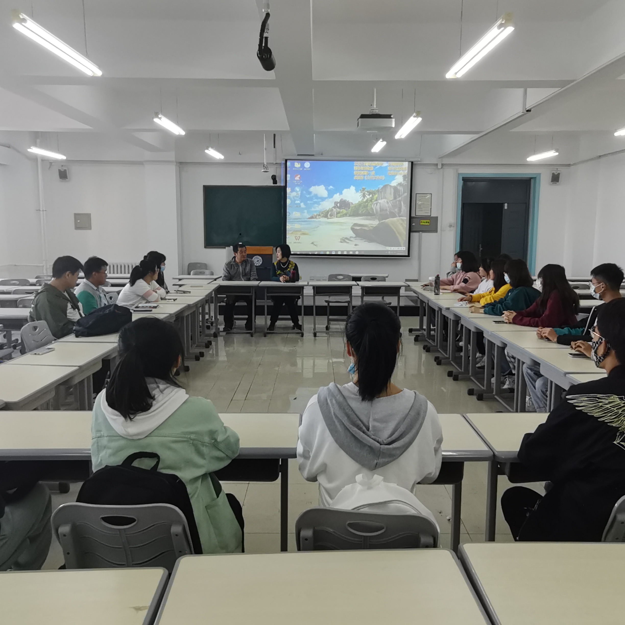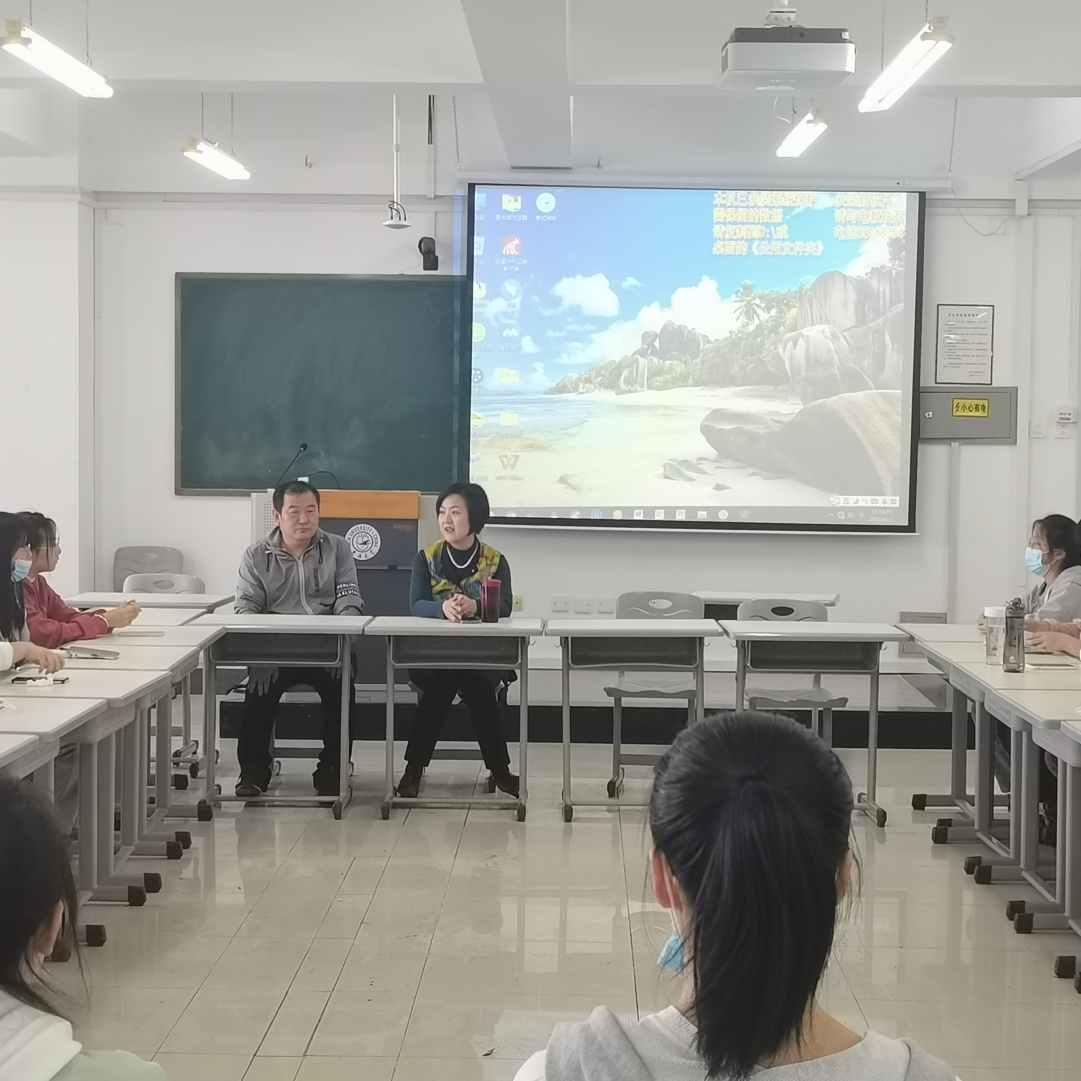 随后,同学们依次进行自我介绍,并对专业的课程设置、学习方法以及学习资料提出疑问,两位老师详细而又耐心地回答了同学们的问题,解决大家心中的疑惑。