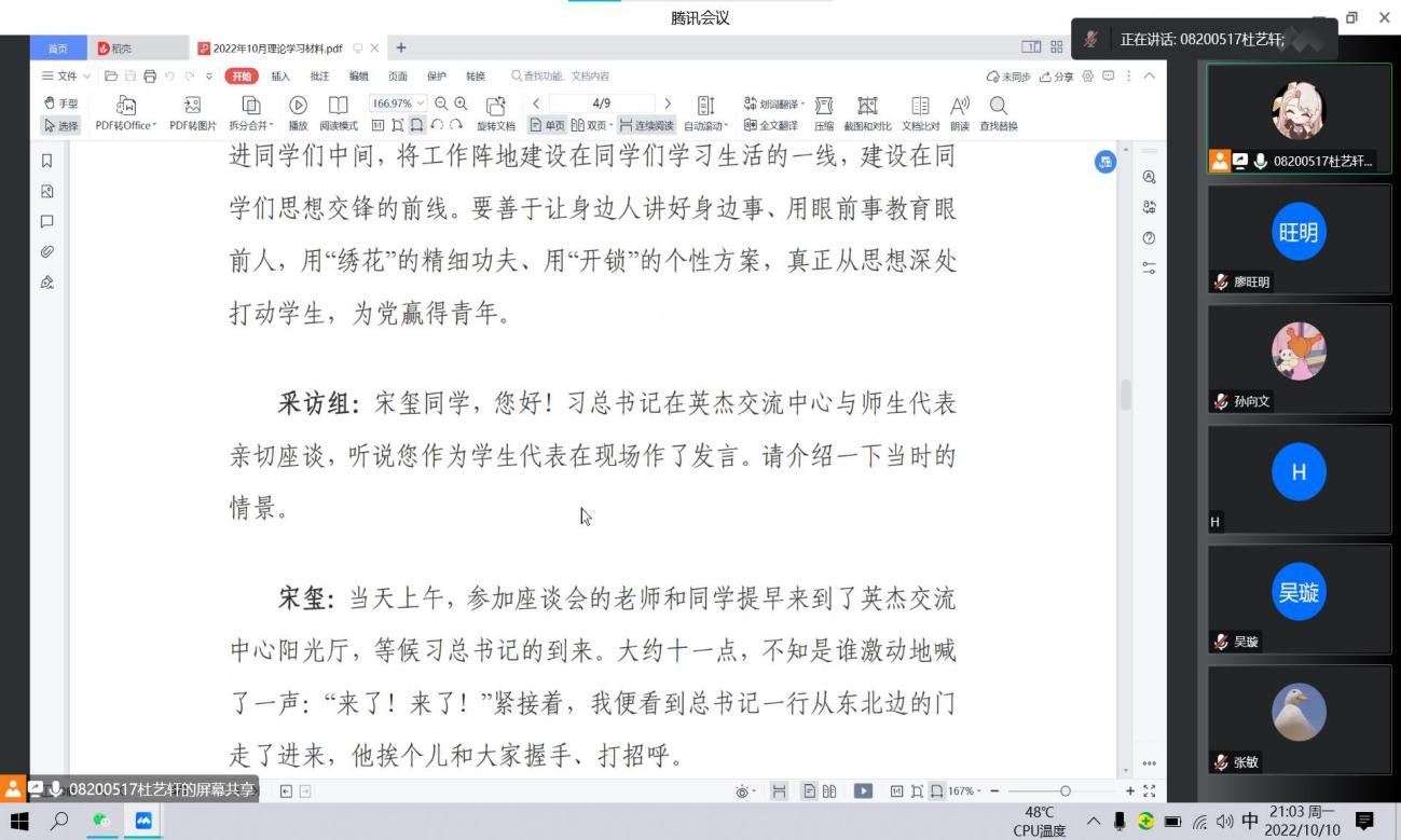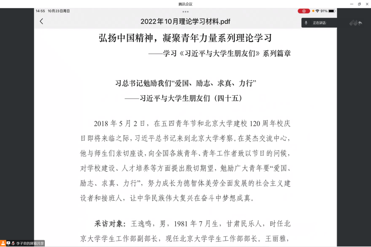 《习近平与大学生朋友们》收录了习近平同志自工作以来与大学生们交往、交流、交心的故事,是新时代青年工作的鲜活教材,其中第四十五篇主要围绕习近平总书记于北京大学120周年校庆与五四青年节到临之际与北京大学师生的座谈内容展开。为深入学习贯彻落实习近平总书记关于青年工作的重要论述,在院团委的指导下,国产色情