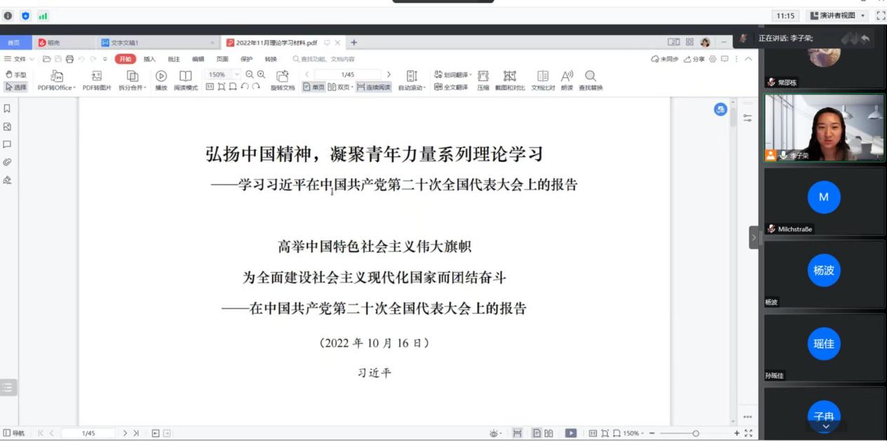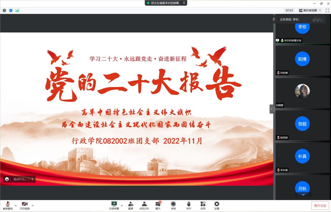 通过本次线上团日活动,同学们深刻领悟到了习近平总书记关于高举中国特色社会主义伟大旗帜,为全面建设社会主义现代化国家而团结奋斗为主题的二十大报告精神。相信通过本次团日活动,行政学子将继续砥砺前行,赓续传承国产色情