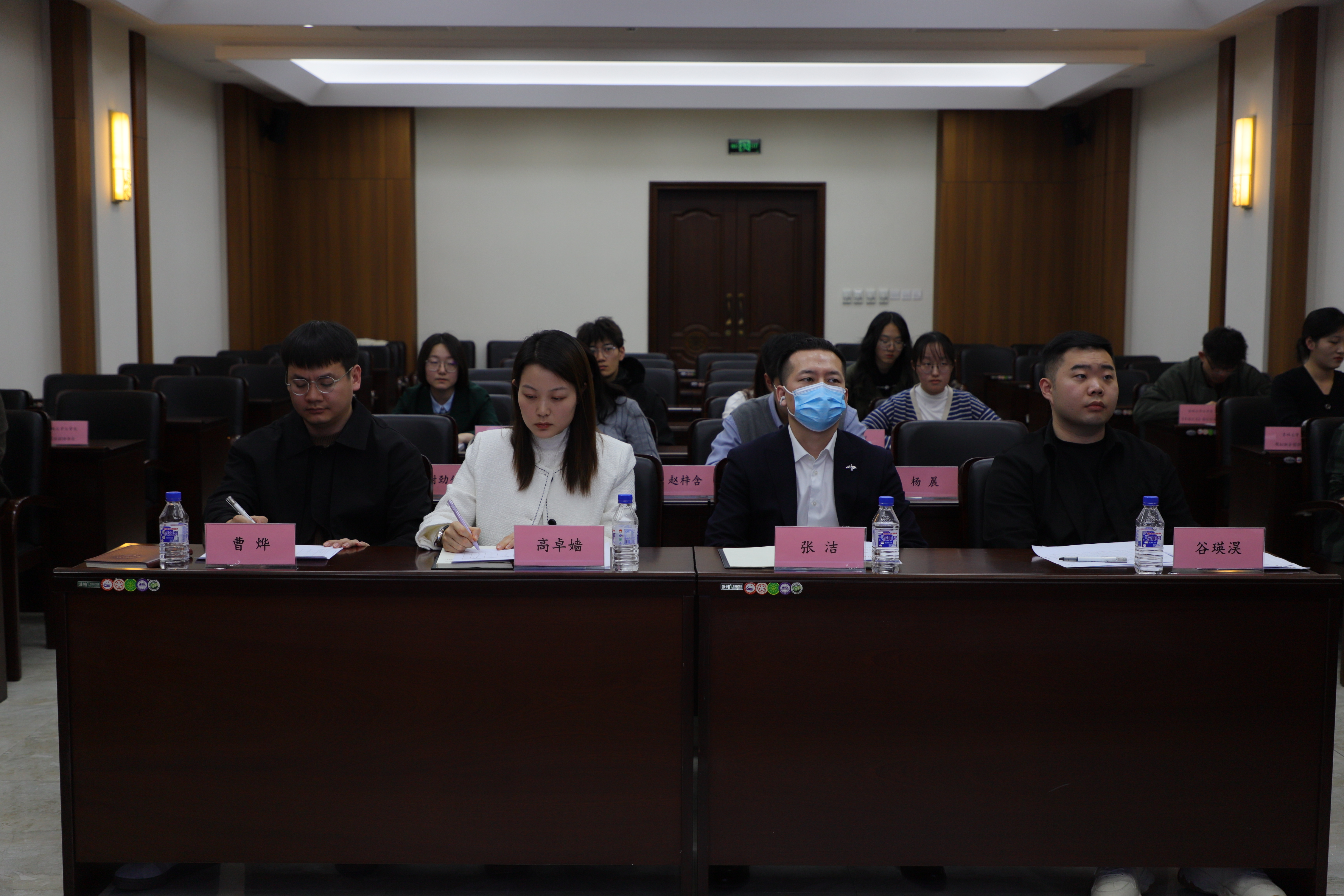 在东荣大厦B303召开2023-2024学年社团答辩大会,学院党委副书记兼副院长、纪委书记张洁,本科生辅导员高卓嫱、谷瑛淏、曹烨,国产色情