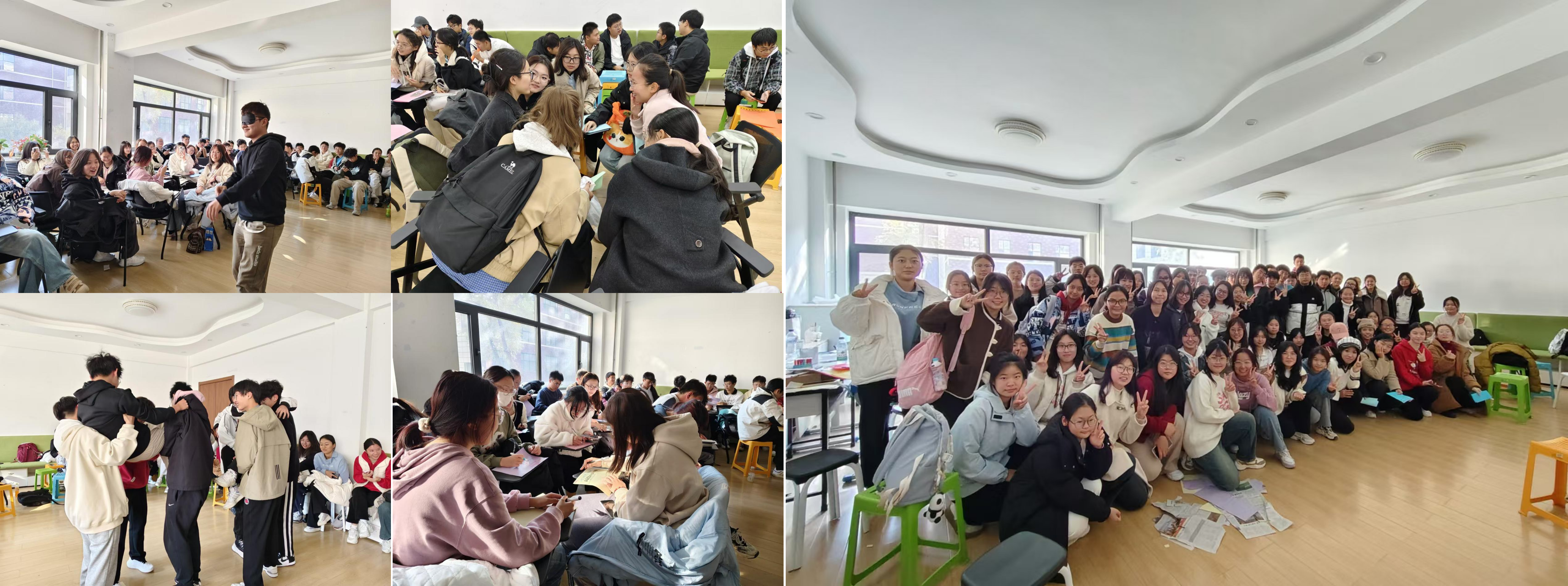 10月23日-25日,学院开展“我们是相亲相爱一家人”本科生新生团体心理辅导,2024级共138名新生参与。心理辅导以团体性游戏的方式开展,兼顾趣味性与任务性,使同学们在轻松快乐的氛围里能够收获友情、快乐与感悟。“我知道”热身环节,“信任之旅”游戏,“集体登陆”环节,“快乐传递”、“信心启迪”等活动,让同学们更好的认识自己、评价自己。活动最后,每个小组绘制团体树,留下自己对未来的期许,活动在欢声笑语中落下帷幕。