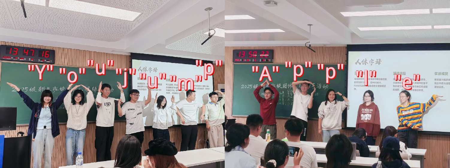 团体心理辅导活动以“我们是相亲相爱的一家人”为主题,通过一系列轻松有趣的互动游戏,让新生在欢笑声中拉近距离,感受集体的温暖与力量。活动在“一分钟鼓掌”的热身环节中拉开序幕,同学们在掌声中遇见新的自己。随后通过“以月份为序”的分组活动迅速建立联结,在“我知道”环节中进一步加深彼此了解。在核心的“工作”阶段,“人体字母”游戏让各组协作拼出“RED APPLE”等富有寓意的词语,展现出团队的创造力与活力;“同舟共济”则考验了大家在有限空间内的协作与信任,将现场气氛推向高潮。活动尾声,同学们共同“绘制团体树”,用画笔记录合作印记与个性绽放,并在《相亲相爱一家人》的温暖旋律中合影留念,为此次心灵之旅画上圆满句号。