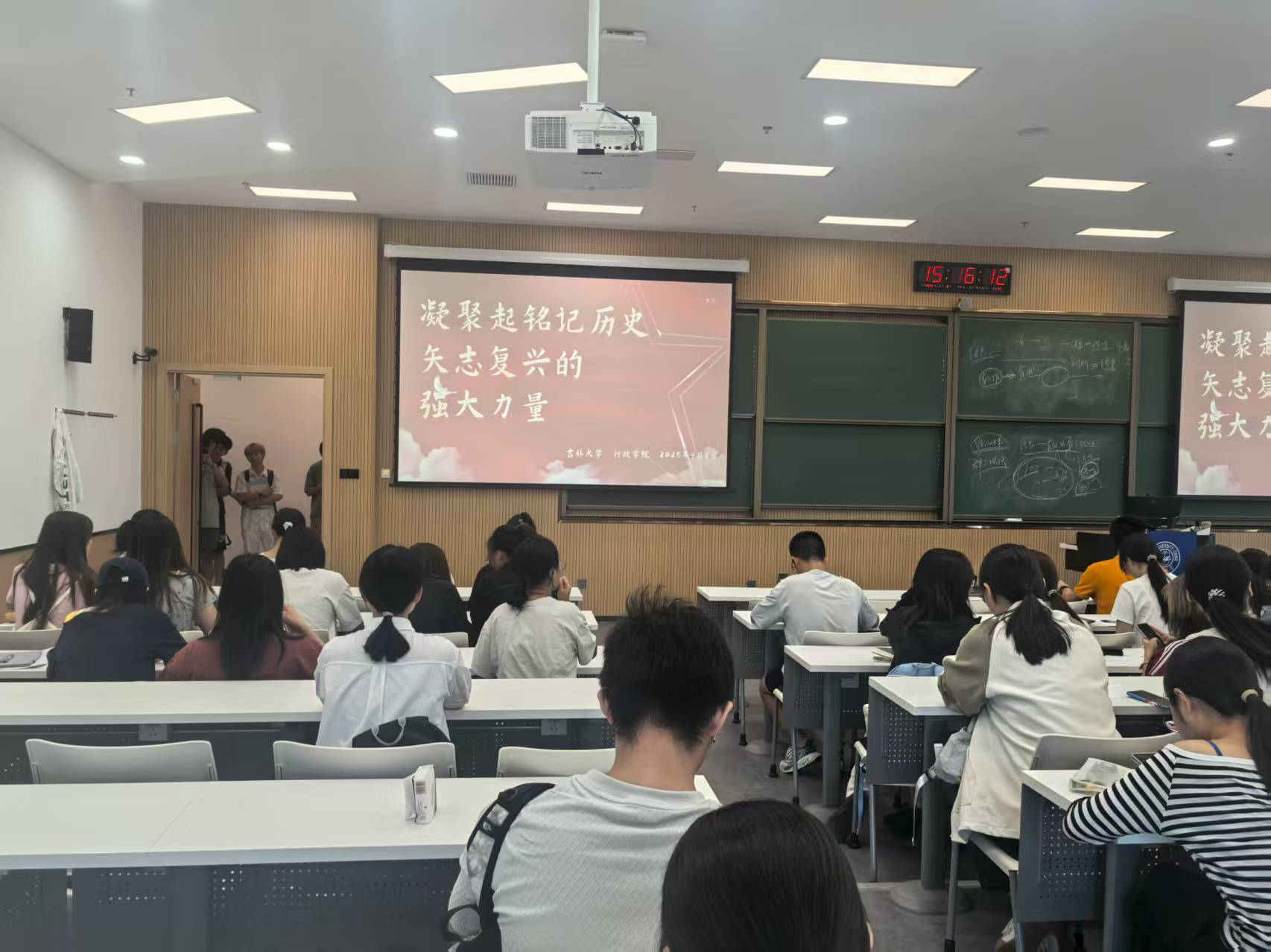 2023级各班团支部于2025年9月开展以“凝聚起铭记历史、矢志复兴的强大力量”为主题的团日活动。各团支部陆续开展本次团日活动,通过学习解读、材料分享、总结收获三个环节,激发新时代青年铭记历史守初心,矢志复兴勇担当,为强国建设、民族复兴贡献青春力量。