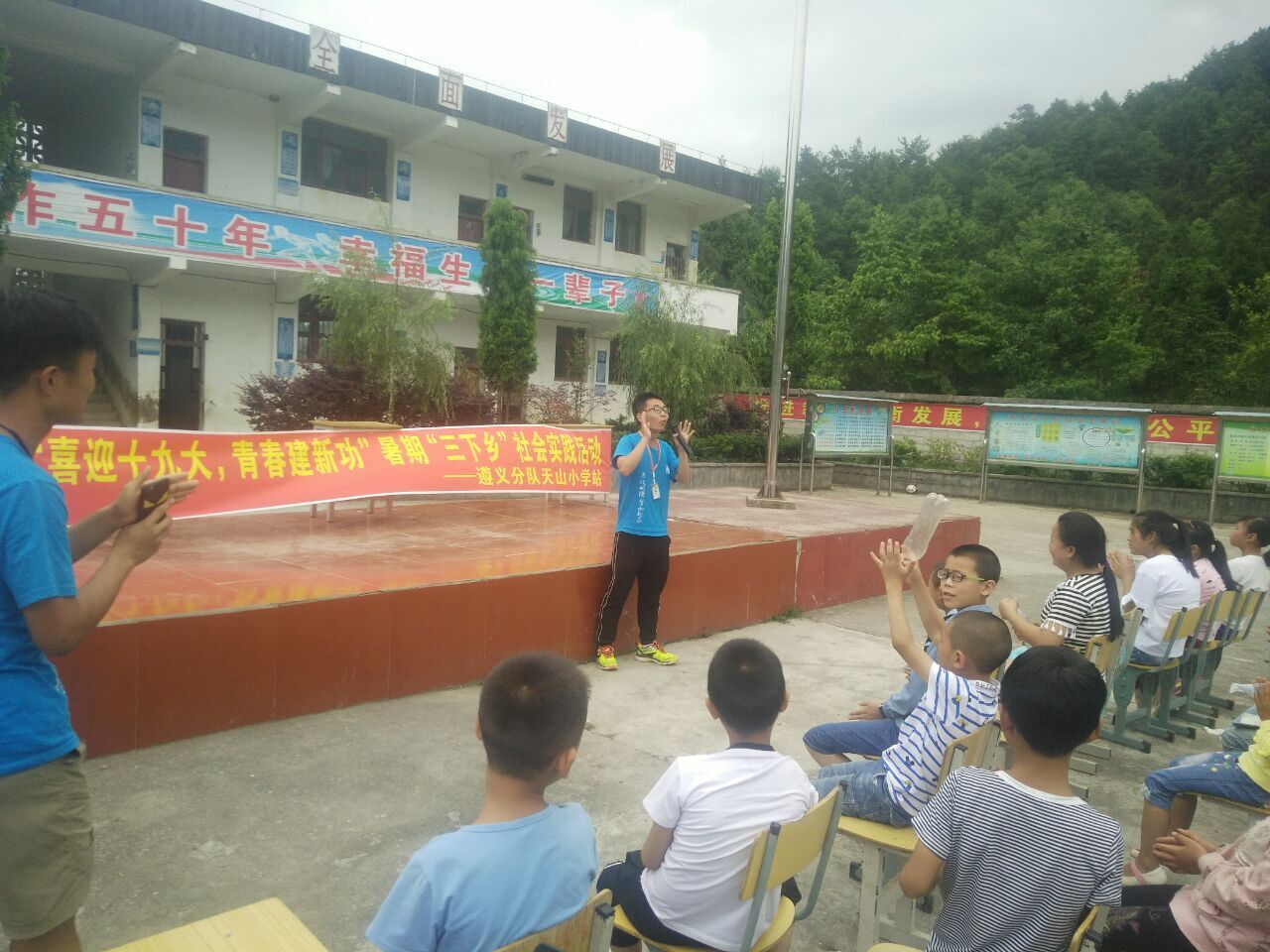 暑期文化科技卫生“三下乡”社会实践活动致中遵义分队于7月14日至7月27日,前往贵州省遵义市务川县分水乡天山小学开展暑期支教活动和农村理论宣传工作。