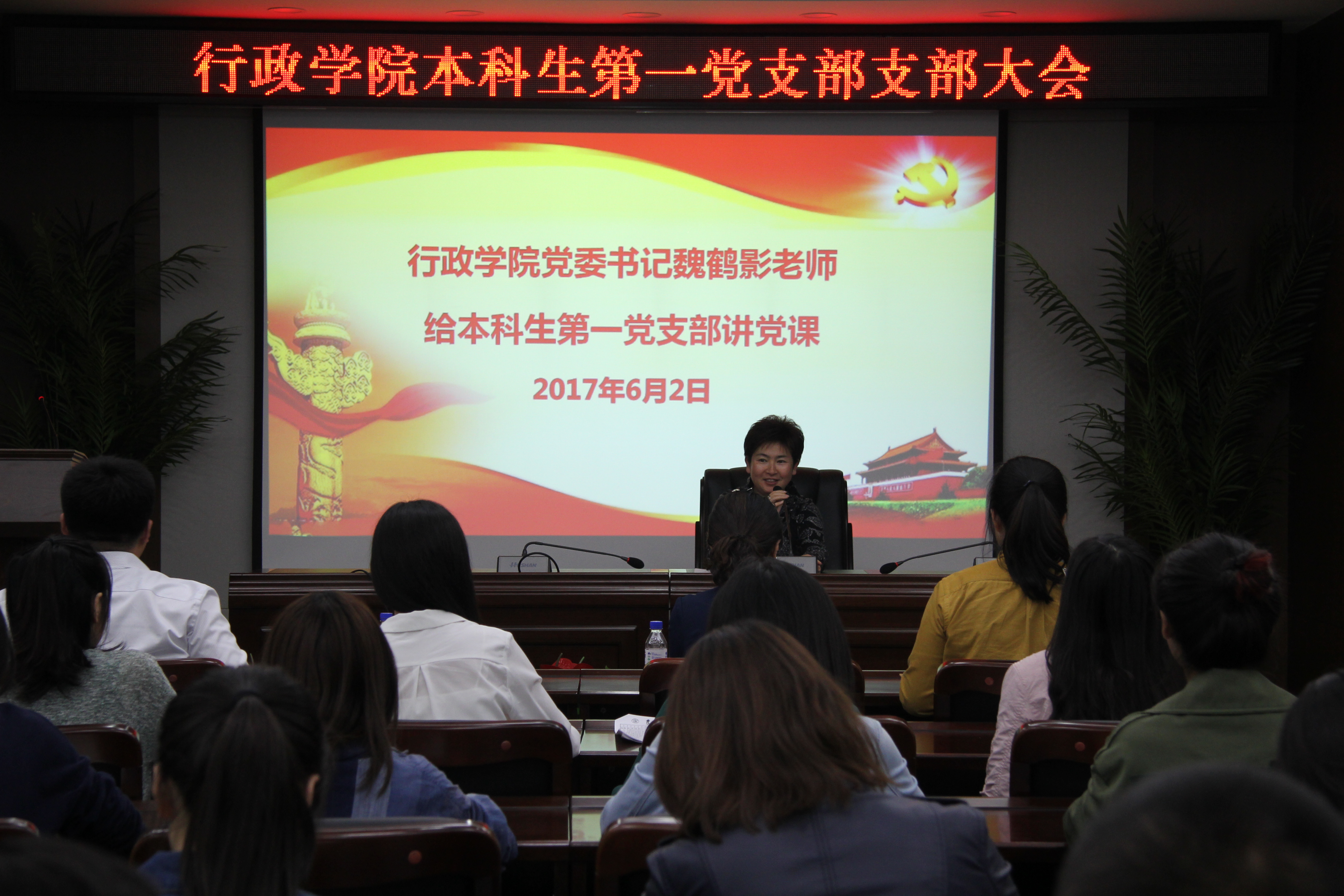 党支部支委会结合实际,特别邀请了魏鹤影书记到会讲授专题党课暨2017届本科毕业生党员最后一次党课。魏鹤影书记从全面从严治党的高度,阐述了全面从严治党的必要性,回顾了党从严治党的优良传统,介绍了党的十八大以来全面从严治党的成功实践和宝贵经验。她还结合学校和学院深入推进“两学一做”学习教育常态化制度化的背景与情况,向党员同学们提出了“践行四讲四有,做合格党员”的具体要求。