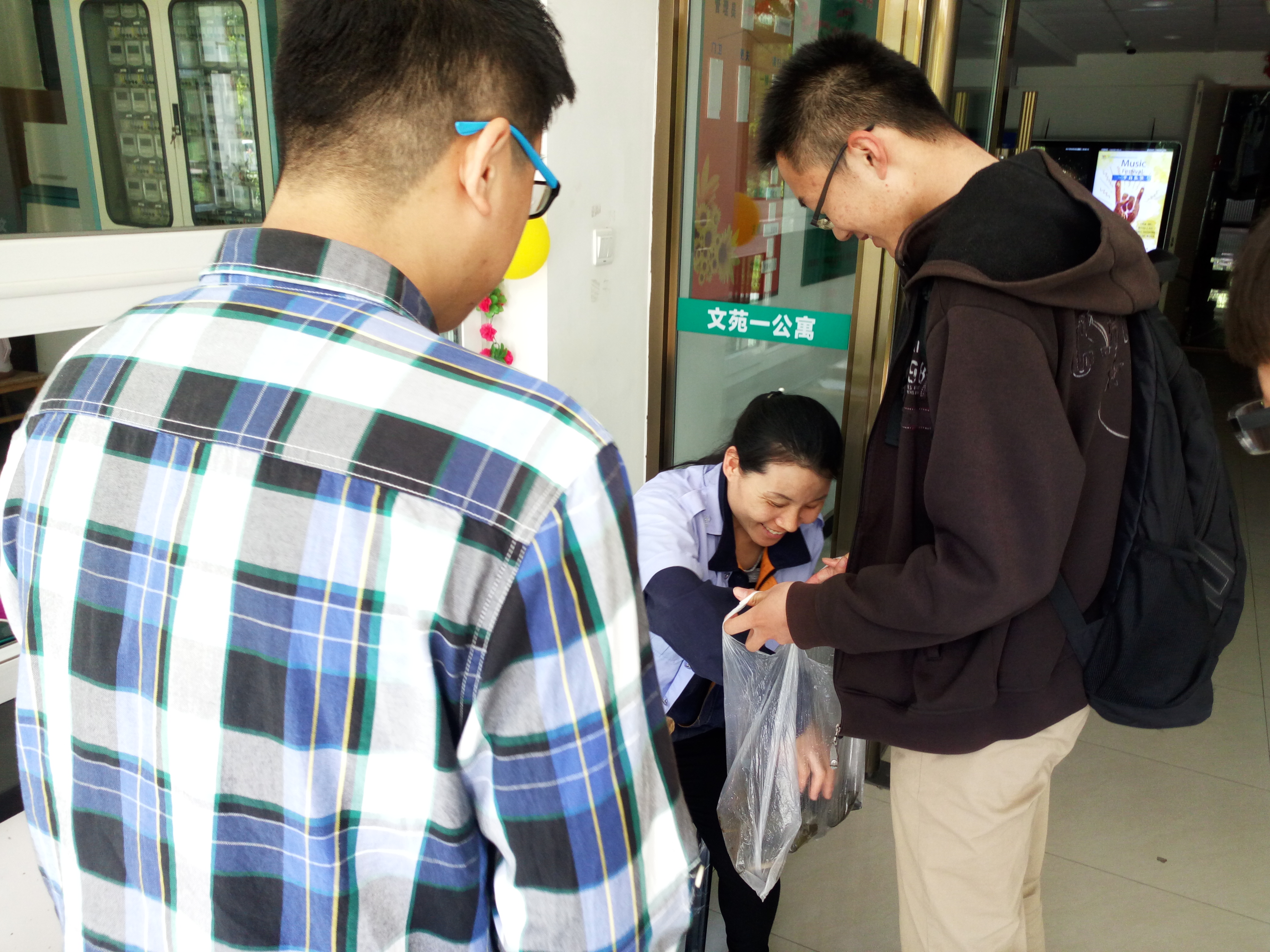 5月30日,我院政能量志愿者协会在中心校区举办了“端午节校园送温暖——关心校园幕后工作者”志愿服务活动。活动由副社长董文鼎(2015级本科生)、团支书贺子轩(2015级本科生)带队,共10名志愿者参与。