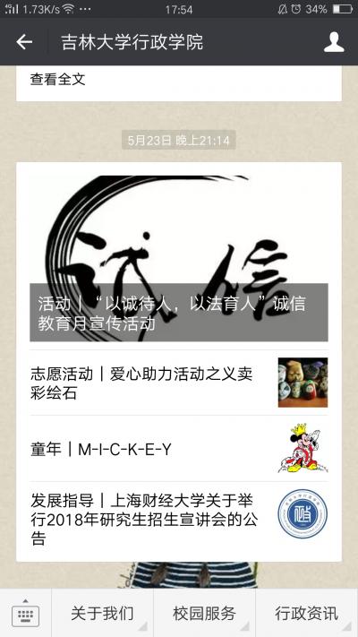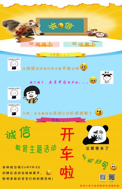 本次活动通过展示板、海报、微信推送和班内通知等形式开展。本次活动是诚信教育月系列活动的开端,这一系列活动旨在让本科生进一步审视诚信、理解诚信,营造“以诚待人、以法育人”的良好氛围。(供稿:学生会维权部 马名闻 责编:宣媒通讯员 余欣怡)
