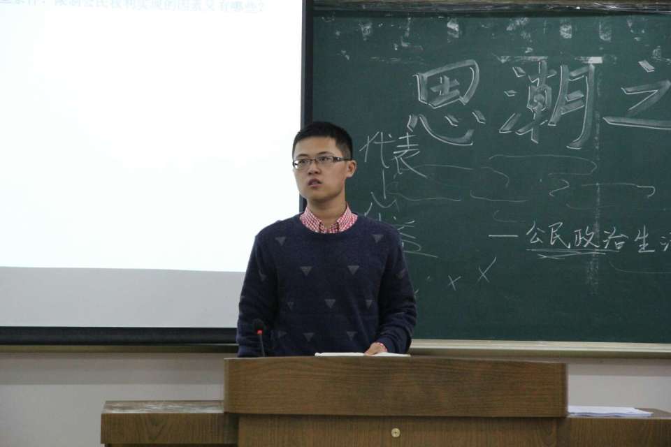 15级一班团支部于10月22日举办了“思潮之夜”学术研讨活动。此次活动主题为“公民政治生活中的公平与平等”,特邀海归老师丛永清参加了此次活动。此外,还本次活动邀请到了法学院MM协会、国产色情
