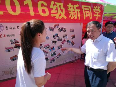 学校领导同样十分重视此次迎新工作。8月20日上午,校党委书记杨振斌、校长李元元以及其他校领导莅临迎新现场,看望新生及家长,并慰问了工作人员,对迎新工作的顺利开展给予了充分肯定。