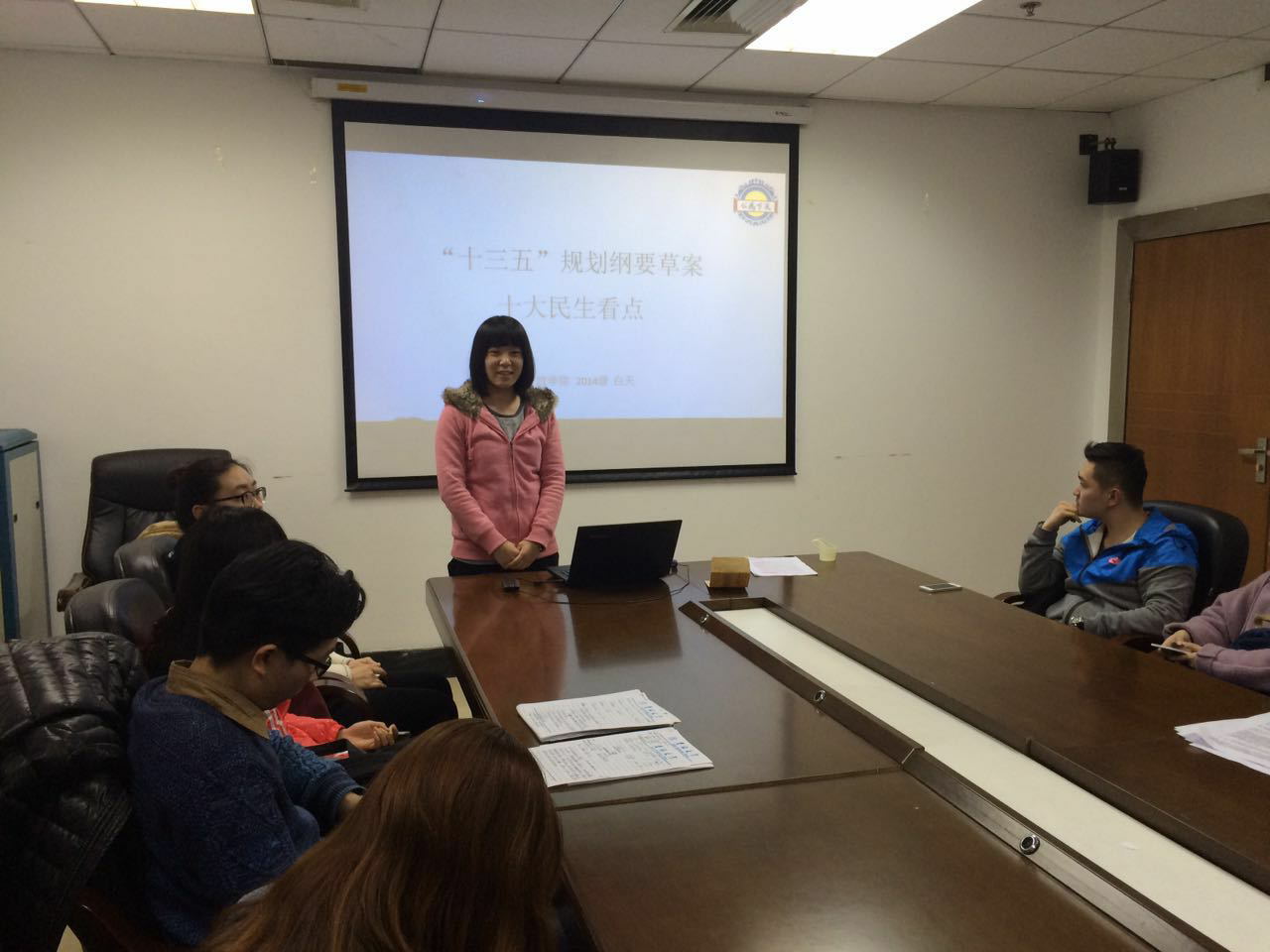 2014级党支部党务负责人裴月莹主持会议并率先发言。她认为对于学生党员最重要的是党的群众纪律。党的群众纪律是党组织和党员在处理与人民群众关系问题上的行为准则,必须坚持群众的利益高于一切,必须尊重和维护人民群众的正当权利和权益,必须全心全意依靠人民群众。裴月莹在发言中结合学院的实际,提出党员和积极分子应在学院活动中发挥模范带头作用,在同学们的利益受损的时候,要积极帮同学们排忧解难。2014级石可欣就《中华人民共和国慈善法》审议通过一事给大家做了详细介绍并发表了自己的看法。她以天津爆炸诈捐事件为例,阐述了《慈善法》实行的必要性,并结合学校社团的慈善募捐活动提出了自己的想法和意见。随后,2014级毕昆从新颖的角度为大家解读了大数据下的两会。在大数据的分析下,两会中的民生关注热点主要集中于生态环境、食品安全等方面;而国外媒体则更关注中国的股市、货币政策等方面。此外,孙丽、李嘉琦、张玉、李京原、张文怡、白天、李文增也就两会热点问题发表了自己的见解。