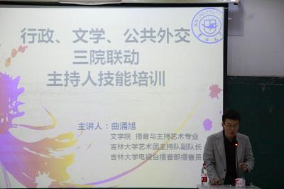 活动首先由赵绍伊为大家进行礼仪培训。她以外交礼节为切入点,分析了礼节在日常关系的良好构建乃至国际外交活动中的重要性,并深入浅出地为大家分别讲解了通讯礼仪,餐桌礼仪,迎宾以及衣着方面的具体日常礼节规范。接着,活动由曲涌旭为大家进行主持培训。他首先为大家介绍了什么是主持人,并围绕舞台表现纲要与大家进行了热烈的互动,为大家分享了他在语言、外形、肢体、表情以及克服紧张和紧急状况处理等方面的经验与技巧。接下来,代铭浩为大家进行公文写作培训。他从写作规范、传达事务和文件管理等方面介绍了公文写作培训的必要性,并针对公文格式、行文规范等方面为大家进行了讲解。活动最后,培训会进入提问互动环节,观众就议论文写作、发声练习技巧等方面与主讲人们进行了交流,解开了心中的疑惑。活动于晚8点30分在大家的掌声中结束。