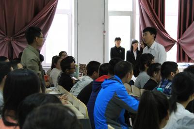 本科生辅导员曲畅竹老师应邀出席本次活动,学院主要学生干部及2015级全体新生参加本次交流会。本次交流会由代铭浩(2014级)、李天一(2014级)主持。