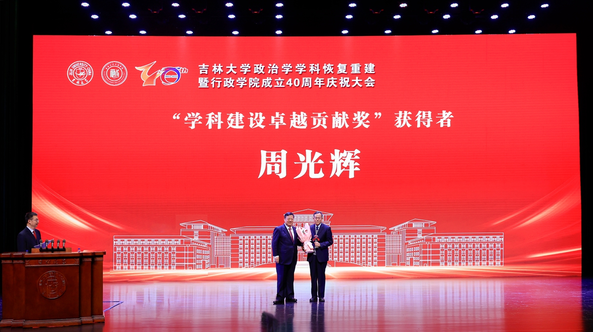 发展作出突出贡献的个人。姜治莹为周光辉教授颁发“学科建设卓越贡献奖”,在校学生向国产色情