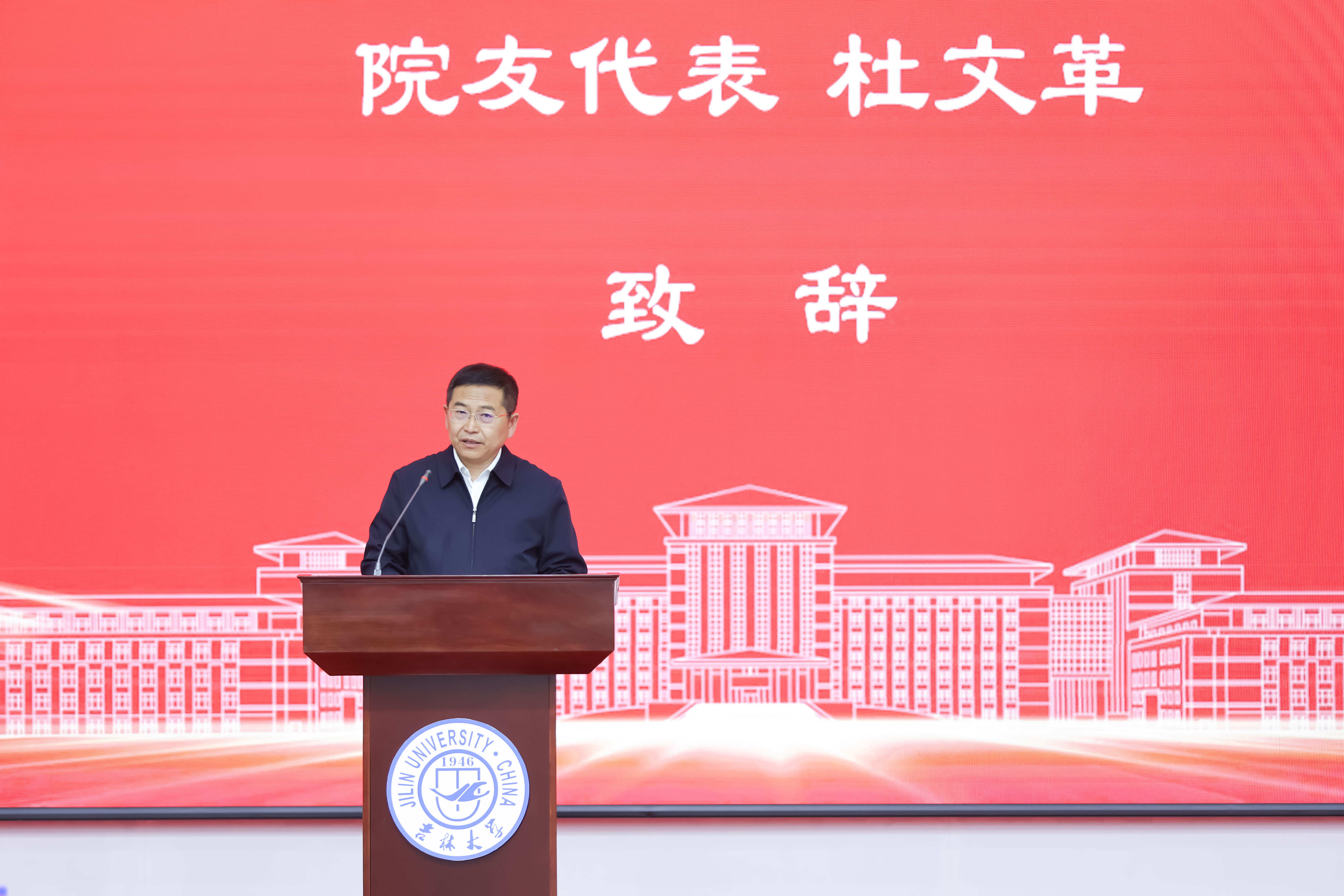 1986级本科生杜文革代表返校院友在开幕式发言。杜文革说到,院庆期间广大院友都沉浸在久别重逢的喜悦中,都在追忆珍藏在脑海中的校园往事,都在畅谈毕业以后的人生感悟。以王惠岩先生为代表的先贤的学识和威望让院友为之骄傲和自豪,以周光辉教授为代表的老师们的教诲让院友们培养了强烈的社会责任感,以辅导员为代表的其他教工与院友们结下了毕生珍重的深情厚谊。杜文革对学校及学院近年来的变化发展表示赞叹和欣喜,向学院未来各项事业发展进步表达祝福,并向广大院友发出倡议,用各自在工作岗位和社会生活中的优异成绩回报学校、汇报学院、回报恩师。