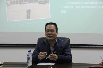 首先发言的是现任导演,音乐制作人,文化传播公司老总的1984级院友王盛智。他回忆了自己在大学求学和自己工作后打拼的一些故事。他从小就对音乐感兴趣,因为喜欢,靠着坚持,真正把兴趣变成了职业。他特别谈到,坚持和学习在工作中的重要性,还通过分享自己在广州打拼的一段较为艰难的经历来告诉大家坚持的意义。而政治学教给他的独特思维模式也使他在后面的路上走得越来越远。