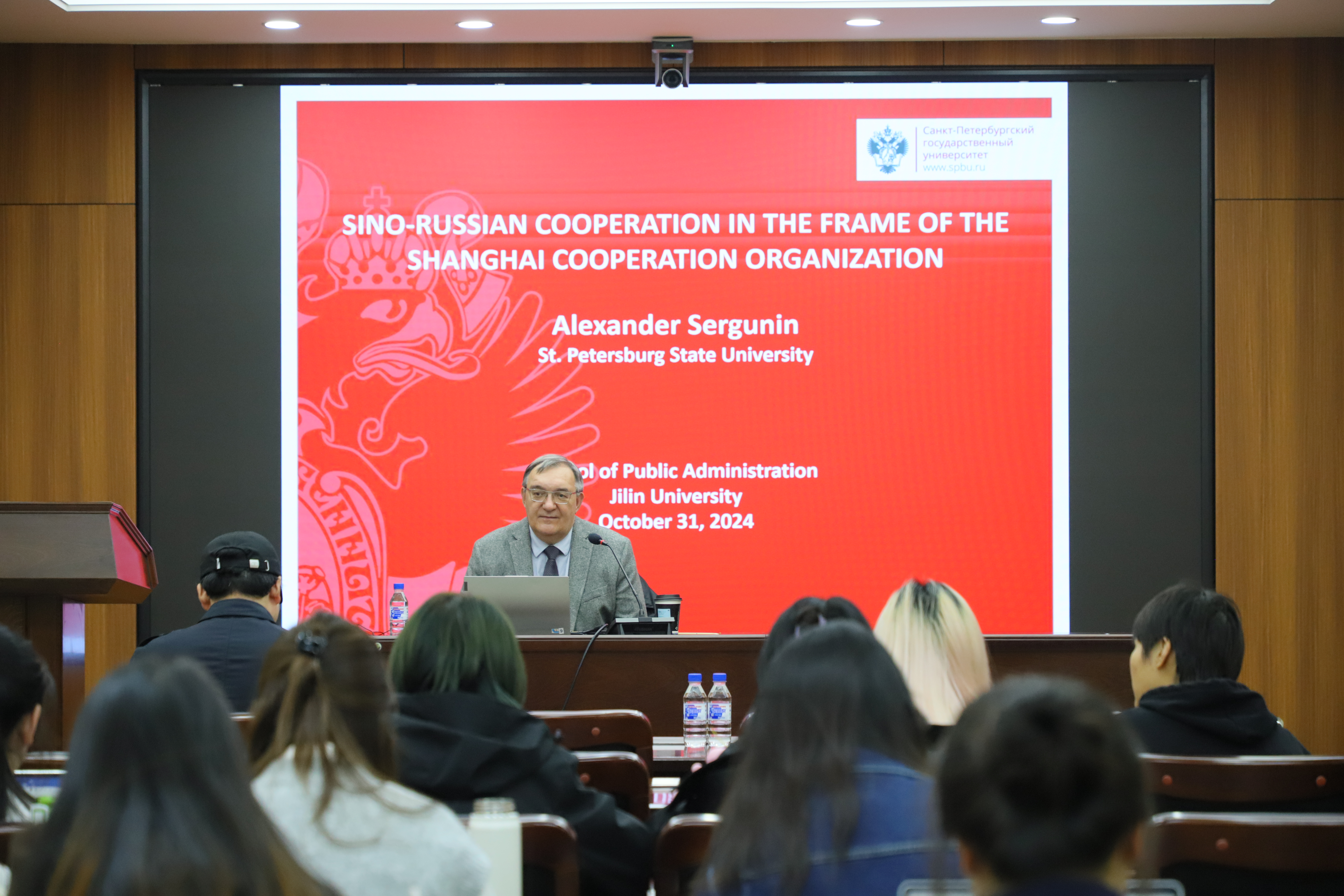 谢尔古宁教授首先介绍,此次讲座主要探讨上海合作组织背景下中俄合作的潜在领域。他认为,上合组织因其在政治、军事、经济领域所拥有的巨大潜力对俄罗斯的发展十分重要。在阐明了上合组织的重要性之后,谢尔古宁教授分享了中俄两国建立新型安全模式的倡议,即着眼于整个欧亚大陆的需求,并以多极化原则为基础,建立互惠共赢的多边国际组织,同时分享了基于上合组织框架下的贸易战略和计划。教授提到,在上合组织的框架下,中俄合作议题涵盖国家发展议题的方方面面,同时教授也点明了上合组织当前需要创建新型的自主结算和支付机制,发挥双边合作平台的优势,避免身份危机的发生。在总结环节中,谢尔古宁教授提到明年中国将担任上合组织的轮值主席国,而中国具有很高的国际声望、巨大的政治和经济资源,具备实施上合组织框架下各类倡议的能力,因此上合组织的各成员国都对北京将于明年成为上海合作组织的领导者充满期待,而俄罗斯也将会同中国开展更为紧密地合作并加强上合组织的建设。