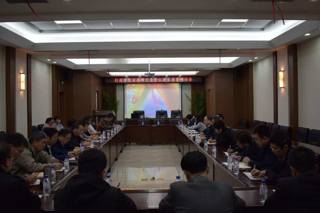根据学院新时代教育思想大讨论的安排,为交流研究生学位论文指导经验、改进研究生学位论文指导各环节的工作,提高研究生学位论文质量,我院于2018年10月24日下午在中心校区东荣大厦B303会议室召开了提高研究生学位论文质量研讨会。本次研讨会由张贤明院长主持,学院全体领导班子成员和教师参加了此次会议。