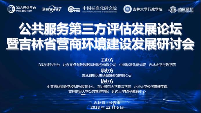 主办,吉林省格远市场调研咨询有限公司承办,中共吉林省委党校MPA教育中心、东北师范大学政法学院、北华大学经济管理学院、吉林财经大学公共管理学院、延边大学MPA教育中心支持的“公共服务第三方评估发展论坛暨吉林省营商环境建设发展研讨会”在长春市召开。