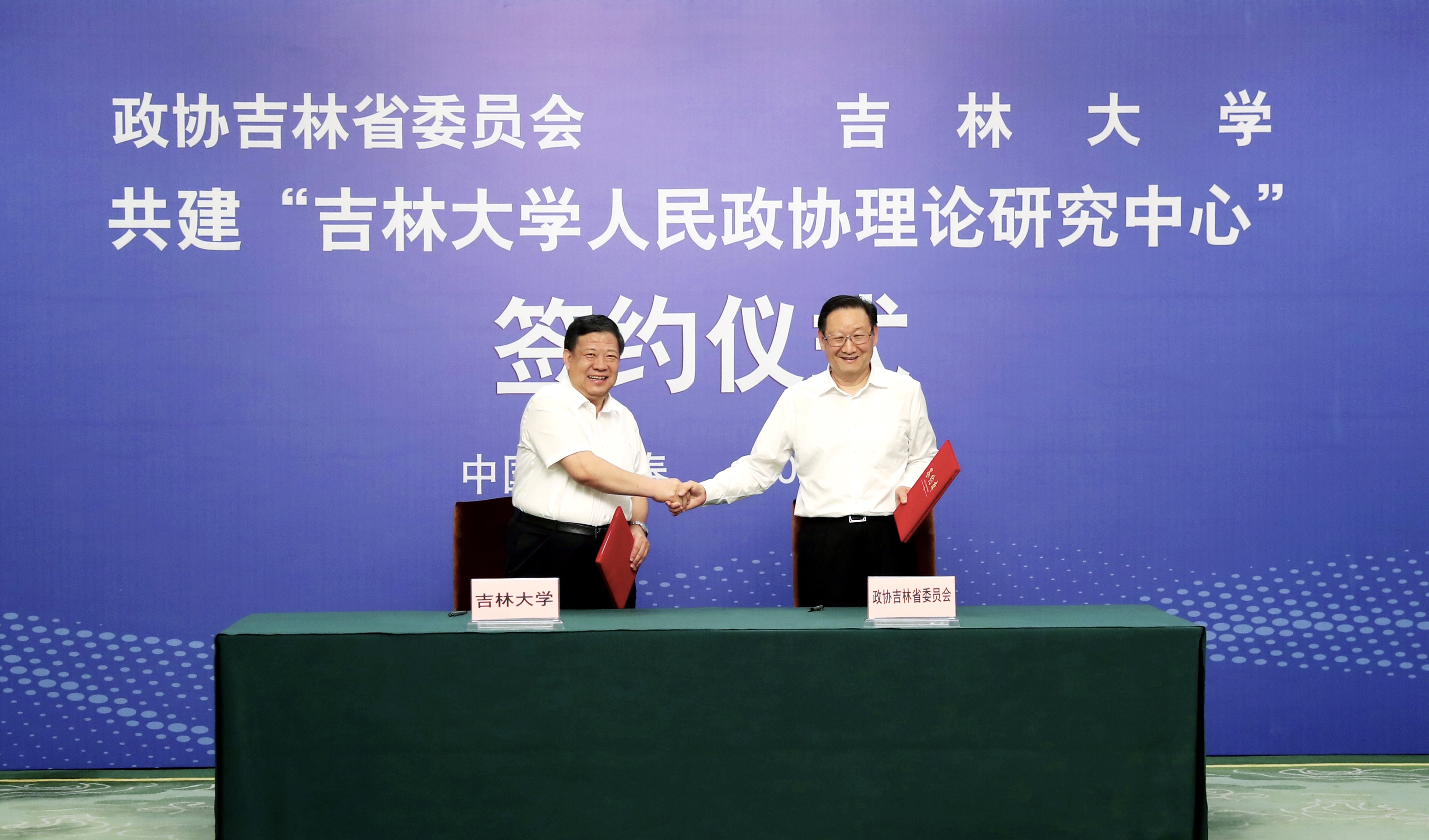 党委书记姜治莹与吉林省政协主席江泽林签署合作协议