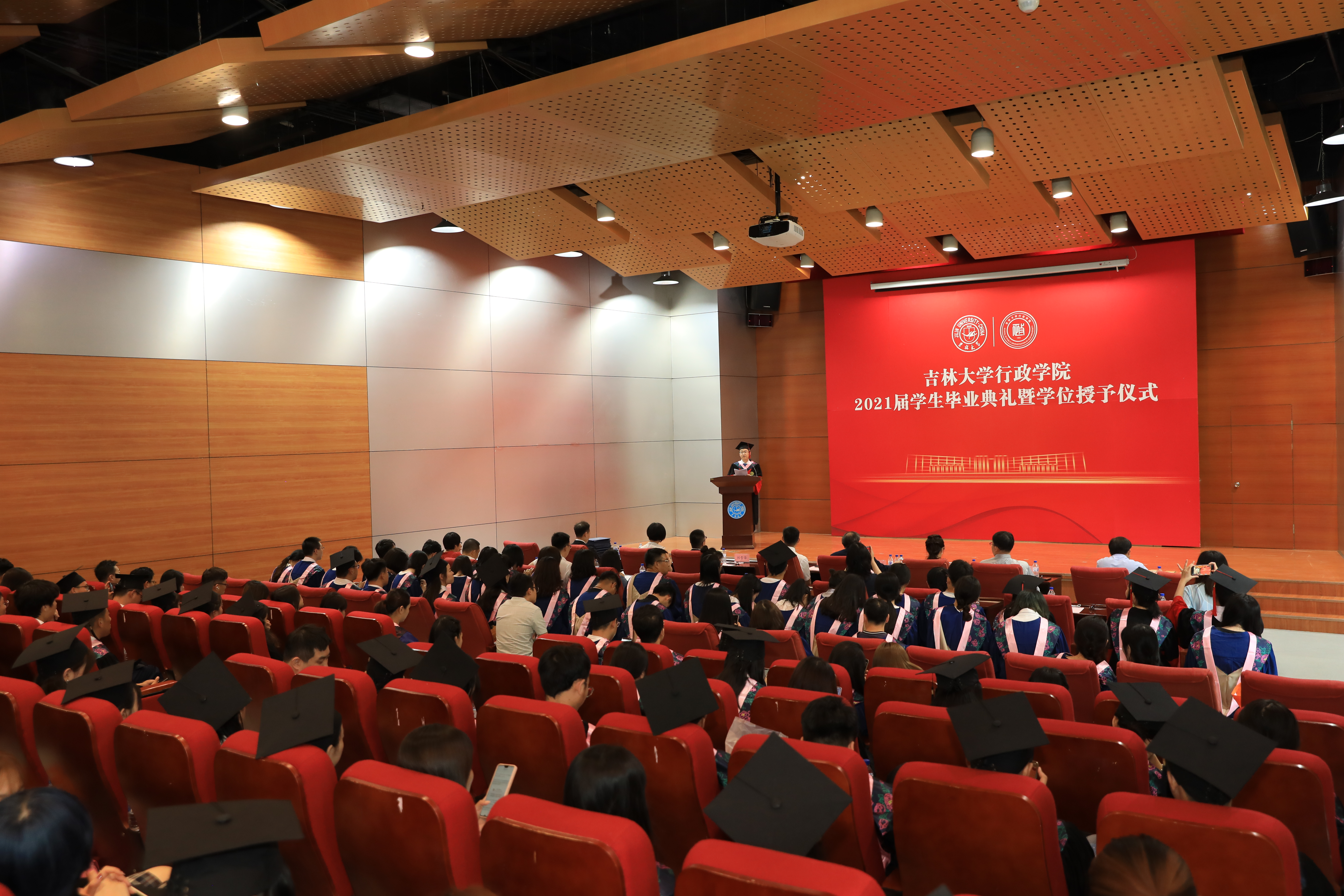 2021届学生毕业典礼暨学位授予仪式在中心校区国际学术大讲堂隆重举行。学院领导班子成员、部分教师代表、相关科室负责人与2021届全体毕业生参加典礼。学院党委副书记兼副院长张洁主持毕业典礼。