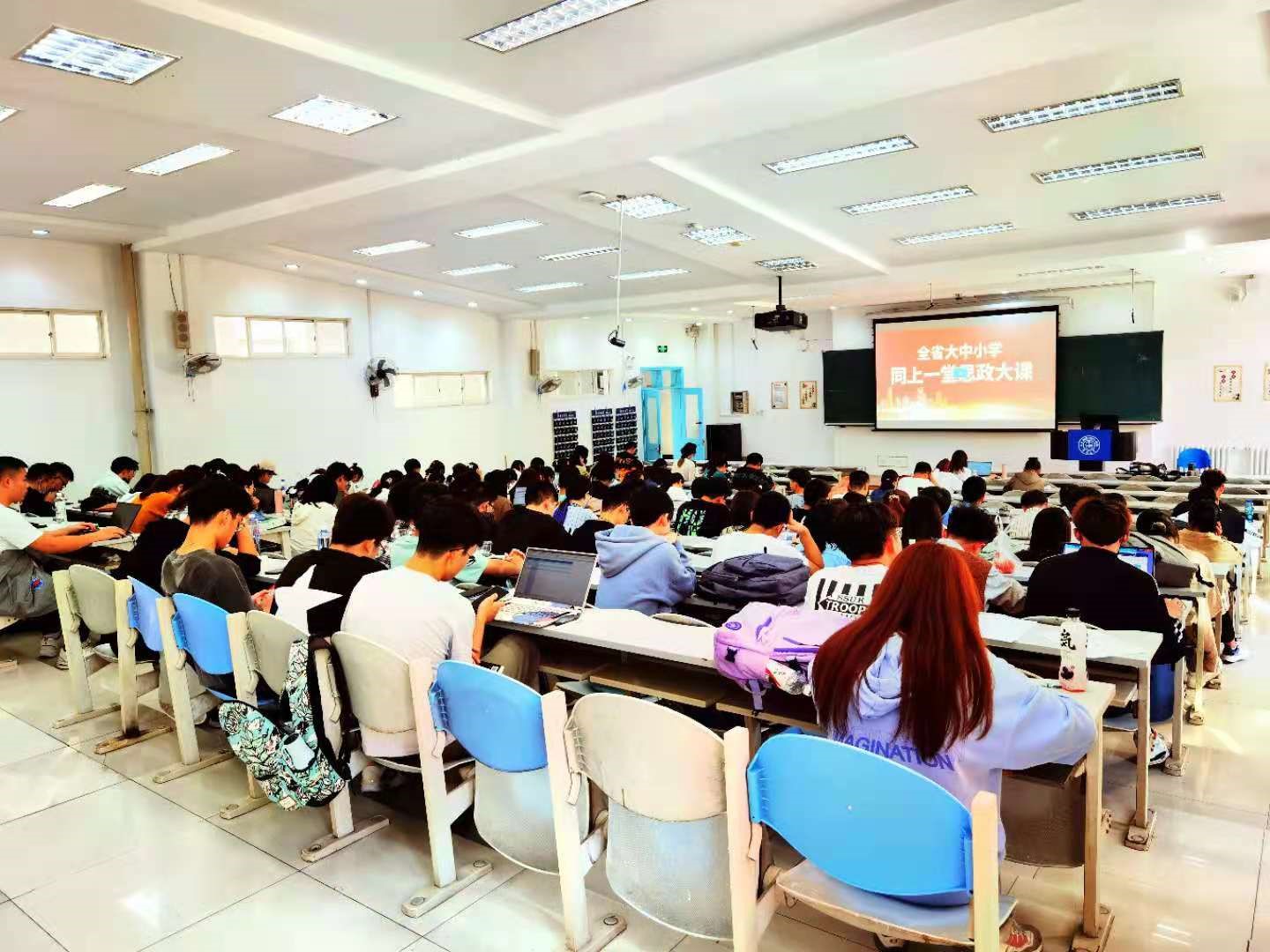 组织2019级、2020级本科生通过视频直播集中观看了吉林省委书记景俊海讲授的专题思政课。学院党委书记马景惠、党委副书记张洁一同参加此次思政课学习。