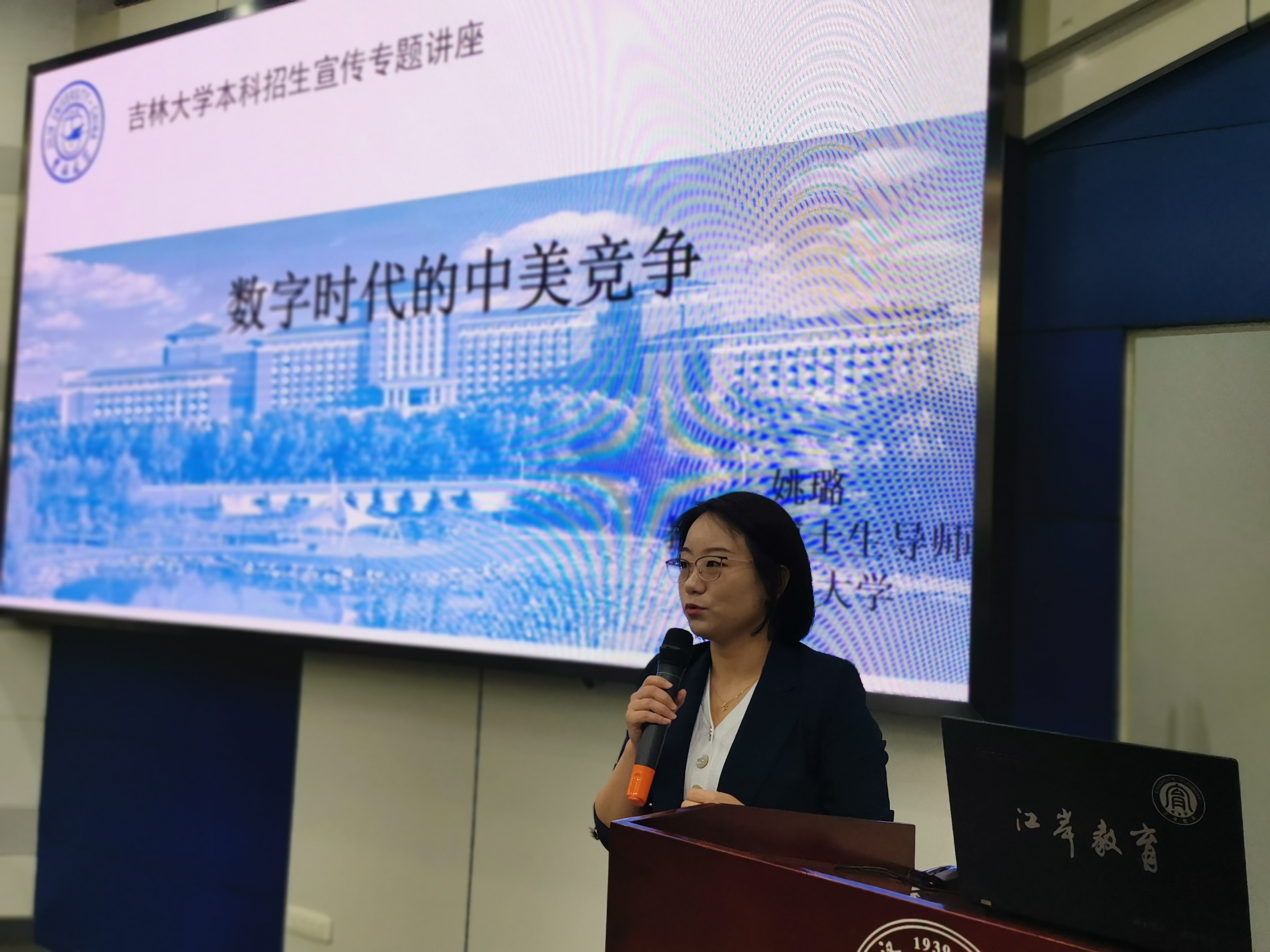 的兴趣,深入拓展招生宣传工作成效,在沙市中学、武汉市第二中学,姚璐教授以“数字时代的中美竞争”为题,分别面向高三、高一年级学生做了现场报告。姚璐从青少年学生普遍关注的时政热点切入,从“不确定”的数字时代与大国竞争、“历史的终结”与“曾经”的中美关系、中美关系迈入“竞争”、中美关系的前景四个方面进行了提纲挈领、深入浅出的讲解,博得会场学生的阵阵掌声,受到到访中学的高度赞许。报告会后,工作组教师耐心细致解答学生关心的问题,并发放学校招生宣传资料和纪念品。