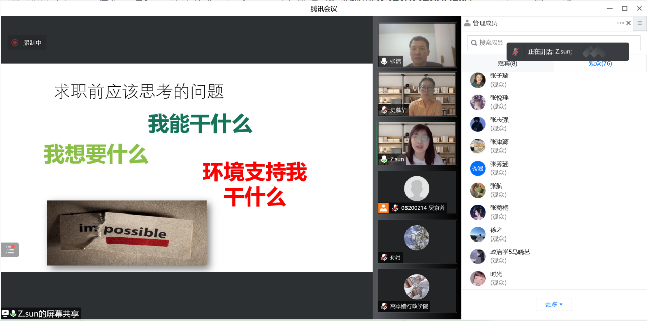 最后,张洁寄语同学们,好的求职简历不是纸上谈兵、凭空捏造的,所有的技巧都必须基于扎实的积累和刻苦的训练。因此同学们还是要注重专业知识的学习,同时不断丰富实践类、竞赛类的阅历,充实自己的“素材库”,具备表层胜任特征,也要打造自己的深层胜任特征,为迈入就业市场固本强基,常备不懈。
