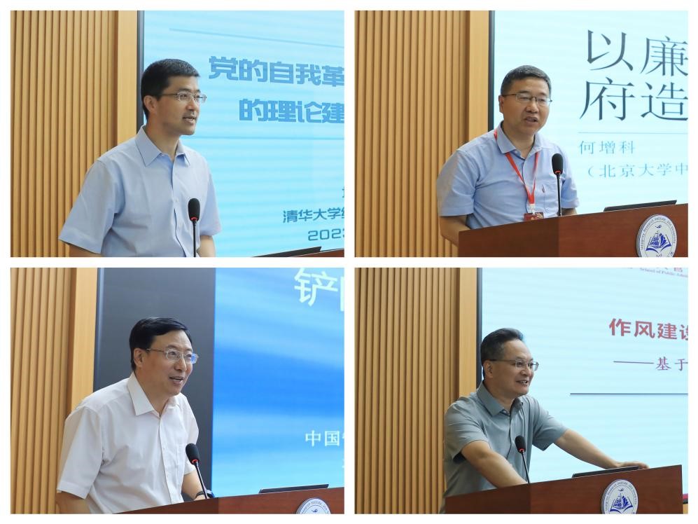 刘畅教授分别主持主旨演讲环节。清华大学党委副书记、清华大学纪检监察研究院院长过勇教授以“党的自我革命引领社会革命的理论建构和实践创新”为题作主旨发言,指出应从实践原则、地方经验、理论探索三个方面构建中国共产党自我革命制度规范体系。中国管理现代化研究会廉政建设与治理专业委员会会长、北京大学政府管理学院何增科教授围绕“以廉能政治和勤廉政府造福于民”作主旨发言,指出廉能政治与勤廉政府是牵引中国式现代化的火车头和发动机,廉能政治建设是反腐败工作的目标指向。中国管理现代化研究会廉政建设与治理研究专业委员会理事长、北京航空航天大学公共管理学院任建明教授的主旨发言题目是“铲除腐败滋生土壤的思考与建议”,提出制度革命和文化革命是铲除腐败土壤的关键手段。中国管理现代化研究会廉政建设与治理研究专业委员会学术委员会主任、中国人民大学公共管理学院倪星教授作了题为“作风建设、政党纪律与自我革命”的主旨发言,基于中央八项规定十年历程,阐述了作风建设和政党纪律的实践逻辑。