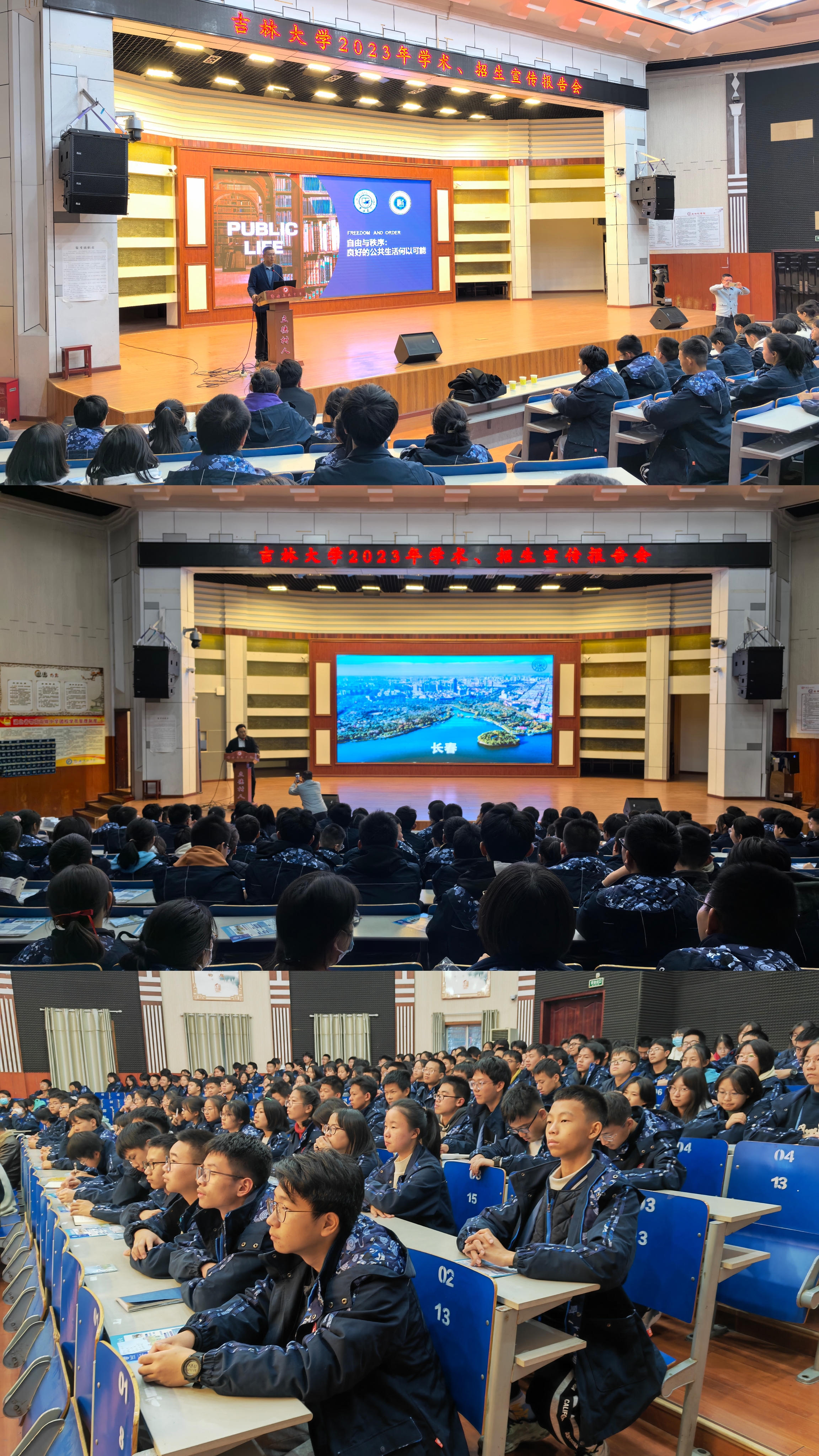 刘雪华教授面向鄂南高中近230名师生作题为《自由与秩序:良好公共生活何以可能》的学术报告。报告由李凯主持。刘雪华教授从同学们的实际生活作切入点,生动形象地向同学们讲解了什么是公共生活、为什么需要公共生活、良好的公共生活是何状态及如何实现良好的公共生活等话题。张力伟副教授向同学们作题为《筑梦启航在吉大》的招生宣讲报告,从学校历史、学科实力、衣食住行等方面为同学们简要介绍了国产色情
