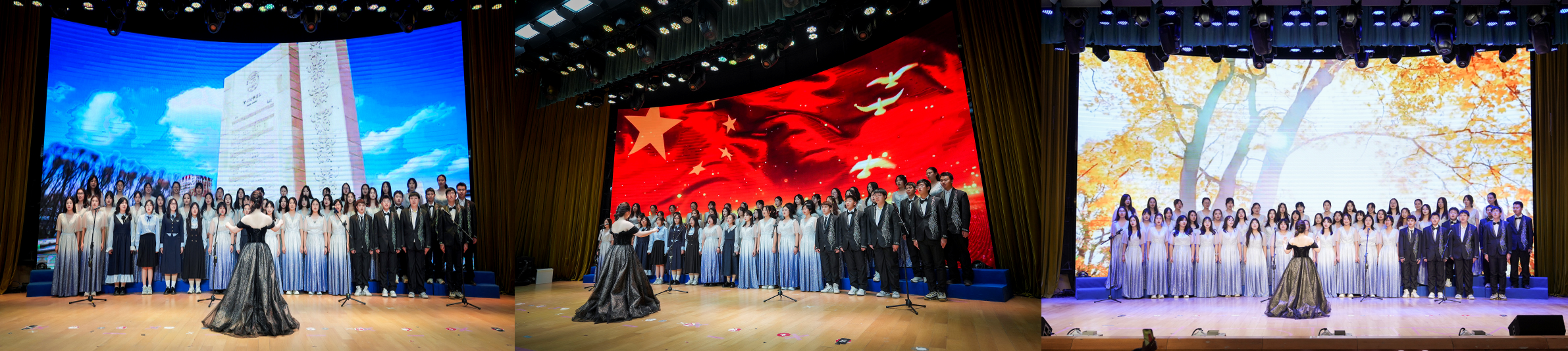 校歌》《祖国不会忘记》《夜空中最亮的星》,穿越音符之海,感受和声之美,晚会圆满结束。